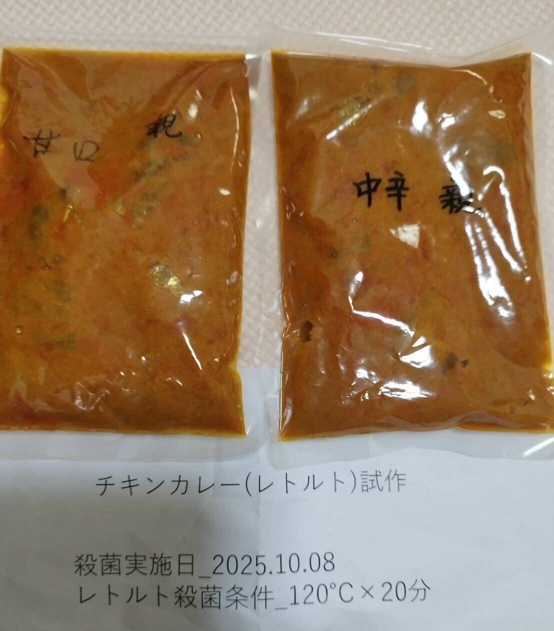 ご無沙汰しております。いつもご支援いただき、ありがとうございます。年末から、レトルトカレーのパッケージデザイン制作と製造準備を進めてまいりました。まずはデザイナー探しから始まり、最終的にメイリーデザインさんに依頼することができました。いくつものデザイン案をご提示いただき、子どもたちにも意見を聞きながら、何度も修正を重ねていただいた結果、ようやく ほぼ完成形と呼べるデザインに仕上がりました!ディーンズカフェで中学生たちと何度も試食を重ねてきた日々を思い出しながら、「みんなで作り上げたカレーのイメージが伝わるように」という想いをデザインにも込めていただいています。製造工程についてのご報告2月19日、宮川物産さんに事前にお送りさせていただいていた親鶏60kgを使い、甘口150食・中辛150食 の製造に立ち会ってきました。これまでの試作(25食分)では、コモンウェーブのスタッフが、皮をはぐ、硬い筋を取る、カットするといった下処理を行った状態でお渡ししていました。今回は宮川物産さん側で下処理をお願いしていたのですが、実際には想像以上に大変な作業だったようで、当初の製造予定日も1日ずれ込み、親鶏では製造不可という結果になってしまいました…。親鶏が使えなくなってしまったため、当初の鶏ムネ肉に戻すことになります。親鶏をレトルトにした際の食感は牛すじのようでとても美味しかったので(実際、試食していただいた方の中には牛すじと思い込んでいた方も)、実現できなかったことは、とても残念です。レシピ完成に向けて実際のカレー作りでは、ガラムマサラなどのスパイスを数グラム単位で調整し、一回ごとに味を確かめながら、150食分のレシピを丁寧に仕上げていきました。大量調理になると、少しの差が大きく味に影響するため、何度も確認を重ねながら、「いつもの味」に近づけていく作業を行いました。今回でルーの味はほぼ完成しましたが、最初にムネ肉で作った際はどうしても肉が固くなってしまっていたため、少しでも柔らかく仕上げられる方法を今後改めて検討していきたいと考えています。そのため、申し訳ありませんが、最終的な完成までは今しばらくお時間をいただけますと幸いです。より良い状態でお届けできるよう、引き続き調整を進めてまいりますので、ご理解の程、よろしくお願い致します。今後のキッチンカー出店予定について当組合が鈴鹿市の若松地区で活動しているご縁から、若松地区出身の大黒屋光太夫にちなんだイベント「SUZUKA KODAYU SAUNA DAY」 に来月出店させていただくことになりました!SUZUKA KODAYU SAUNA DAY2026年は「お風呂の年」、そして 3月7日は「サウナの日」。大黒屋光太夫が1792年に日本へサウナ文化を伝えた功績を、現代のサウナ文化を通じて紹介するという趣旨のイベントで、サウナ発祥の地・フィンランド大使館とのコラボ企画でもあります。ぽかぽかキッチンでは、フィンランドの郷土料理である「サーモンスープ」 を提供することになり、先日もスタッフと中学生で試作品づくりに取り組んだところです。今後の出店予定は以下になります。・3/7(土)大黒屋光太夫サウナ フィンランド大使館共催イベント(11時~15時/鈴鹿医療科学大学6号館)・3/15(日)三重おさんぽマルシェ(10時~15時/椿グリーンパーク)・3/21(土)映画ハッピーエンド(11時~14時/ハヤシユナイテッド)・4/5(日) 三重おさんぽマルシェ(10時~15時/椿グリーンパーク)・4/26(日)松阪いきいきフェスタ(10時~15時場所:ワークセンター松阪)・5/4(祝) 三重おさんぽマルシェ(10時~15時/椿グリーンパーク)・5/10(日)ヴァイオレット試合(11時~14時/AGF)・5/23~24 JA鈴鹿のうきょう祭り(9時~16時/JA鈴鹿)お近くにお越しの際は、ぜひお立ち寄りください。心よりお待ちしております。