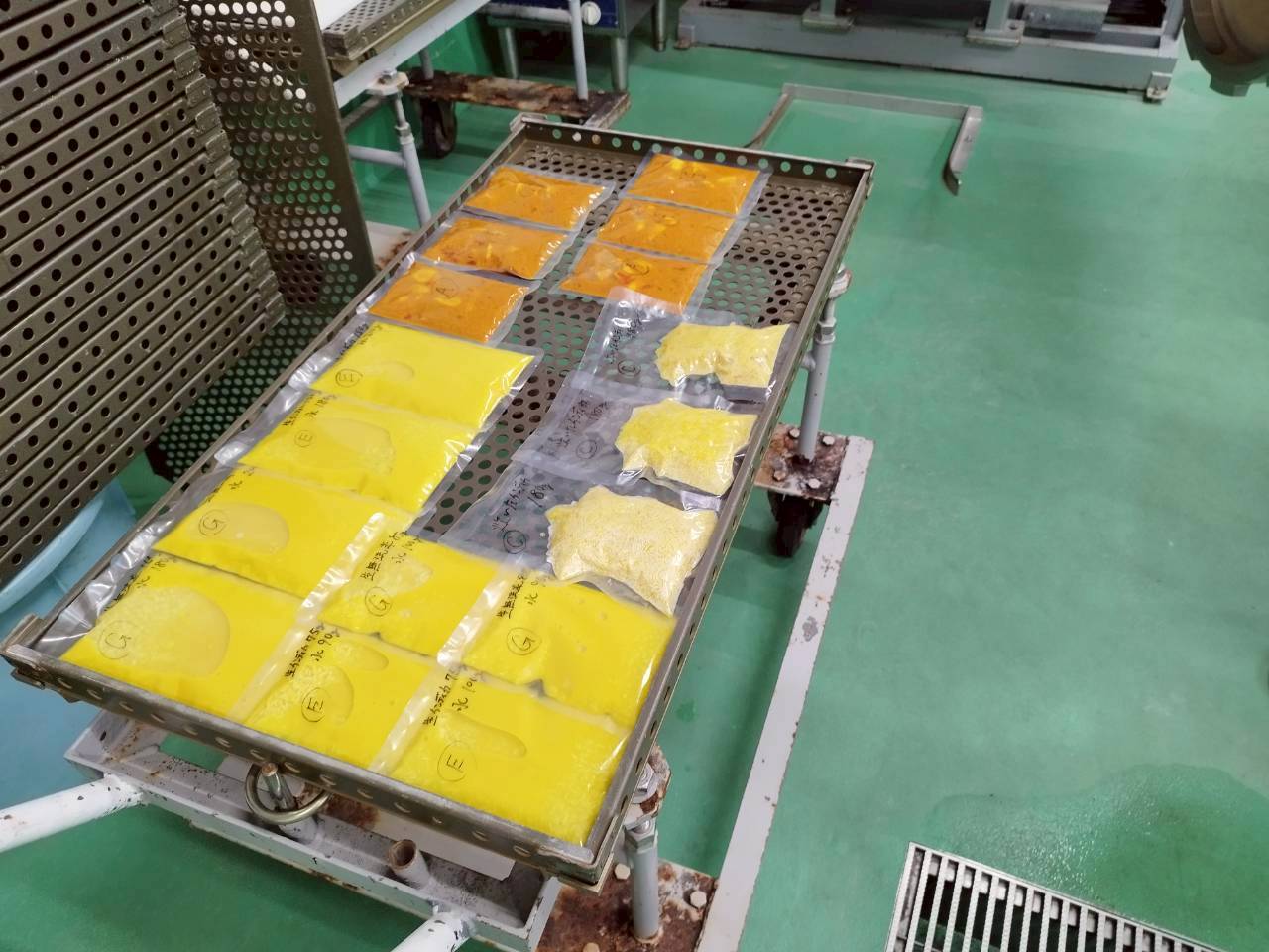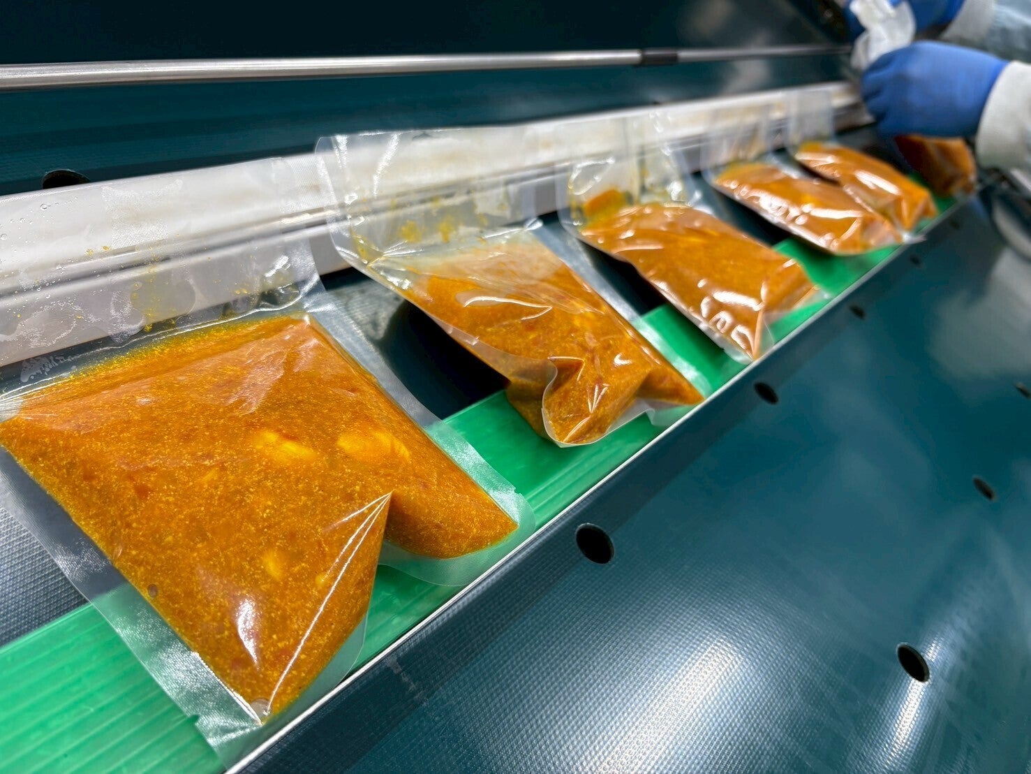 この日は現地でスパイスカレーやターメリックライスを作り、レトルトにしていきました。温度や時間を変えて味に違いが出るかを検証するため、2パターン用意しました。