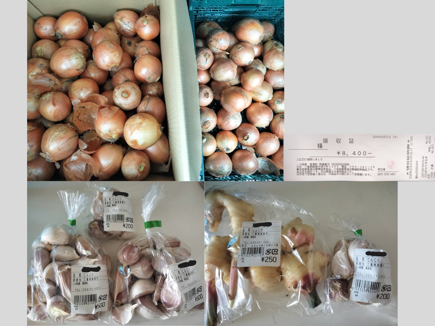 玉ねぎはJA鈴鹿さんが、レトルト900食分に使用する用に、農家さんから大ぶりの立派な玉ねぎ35キロを仕入れてくださいました。この玉ねぎは、宮川物産さんが丁寧に下処理し、冷凍保存してくださる予定です。