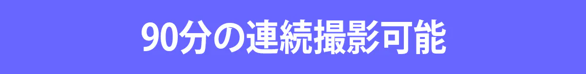 180mAhのバッテリーを搭載しており、1回の充電で最大90分間連続撮影できます。
