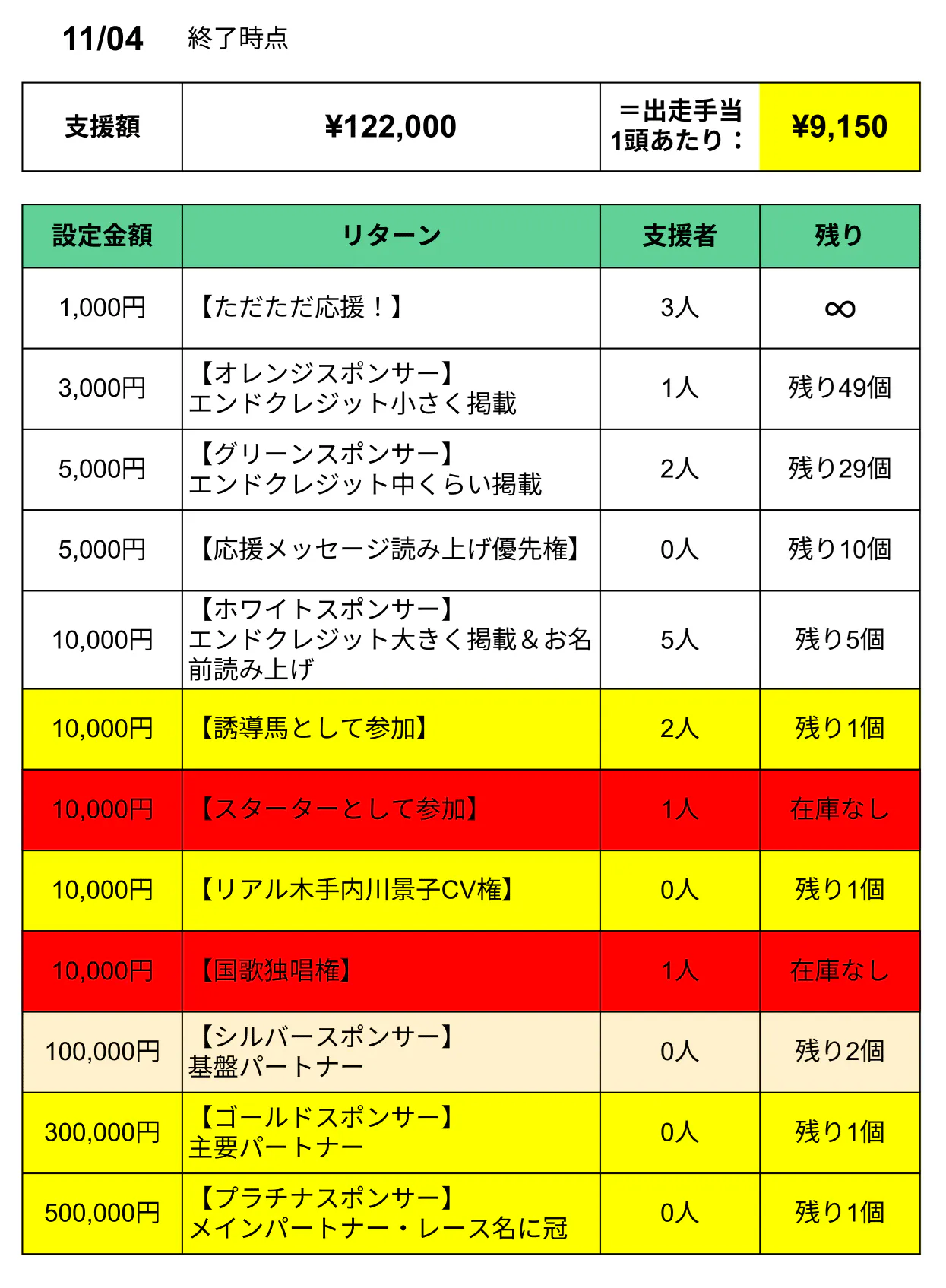 =出走手当1頭あたり 9,150円 に到達しました!!