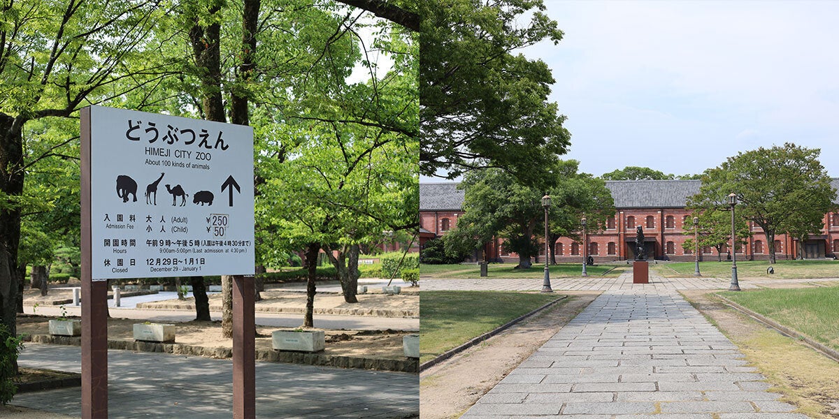 (写真左側にはどうぶつえん、右側に美術館があります)