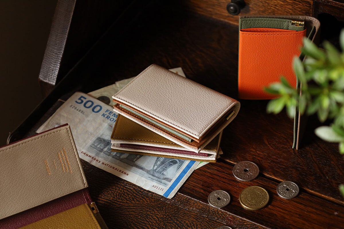 SHINARIを立ち上げて一番最初に製作したアイテム、スマートウォレットです。今回はこちらをきめ細かなシボが上品なフレンチゴートでスペシャルバージョンをご用意いたしました。