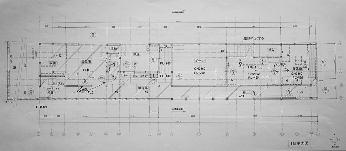 ▴通り土間を歩きながら作業場やギャラリーが眺められるようにしたいと考えています