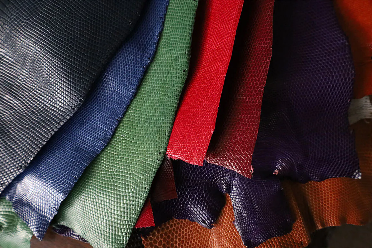 ▴リザードの革(割り方によって腑の見え方や種類が変わります)