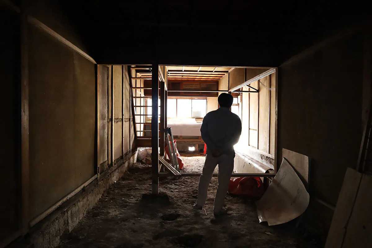 改修中の物件は、戦後に建てられた古い長屋で、細長い通り土間やおくどさんが残る味わい深いものでした。長年空き家になっていたので、所々やられている場所もありますが、昔の職人さんの思いが建物や建具から伝わってくるような気がして。この建物を生かしたい。と思いました。