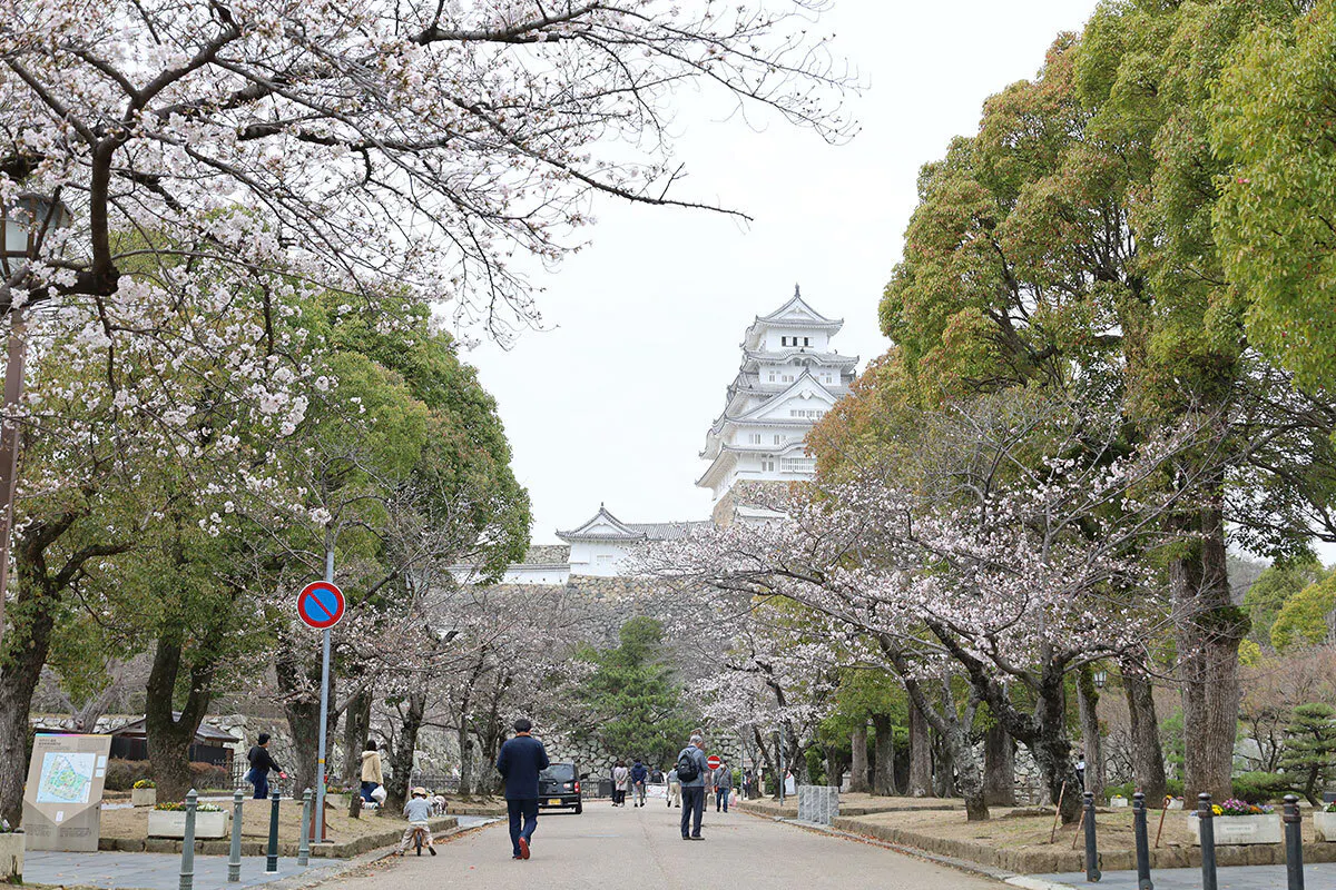 ▴アトリエ店舗の道中に見える姫路城、春には桜並木が