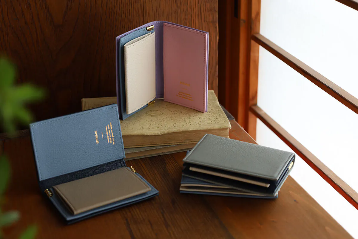 主に取扱店舗さまで販売していたのですが、それが有り難いことに文具のお客様にもご好評いただき、イベント先でもお問い合わせいただくようになり、「お財布や名刺入れを作って欲しい。」「SHINARIさんが作る鞄を見てみたい。」と言っていただくことが増えてきました。今までお世話になってきたお客様に違う領域で求めていただくことが素直に嬉しく、恩返しの意味も込めて、新領域の製作を時間を作って進めるべきなのではと感じるようになりました。