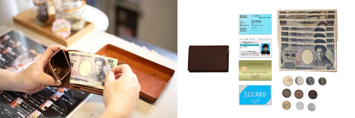 お札、小銭、カード、必要なものは全て収まることが出来ます。