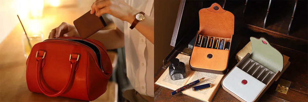 「こうしたら、より丈夫になる。こうしたら、少しでも持ちやすい。」師匠の教えの根底は、いつも持つ人のことを考えたものでした。ちょっとしたお出かけにも、思い出いっぱいの旅行にも、持つ人のそばに寄り添うことのできる鞄、財布・袋物という存在。