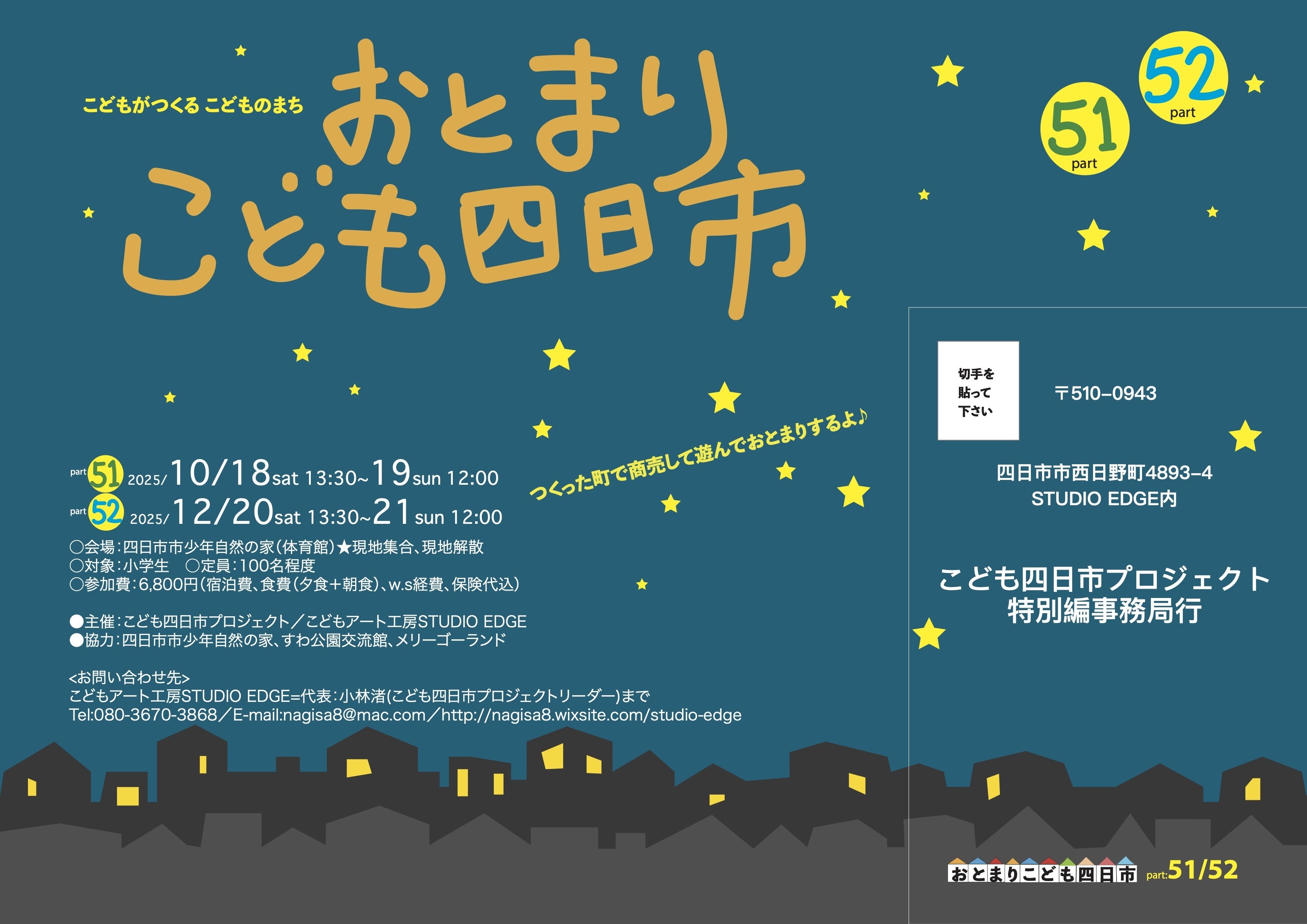 こどもたちが、こども四日市での経験を語るラジオ番組『こども四日市RADIO』(CTY-FM)で、こどもの一言から生まれたイベント「おとまりこども四日市」について話している回を紹介します。2016年〜今までで50回開催してきた人気イベントになっています(コロナ期間は中止や縮小版もあり)こどもたちのリアルな経験ですので聞いてみてください。