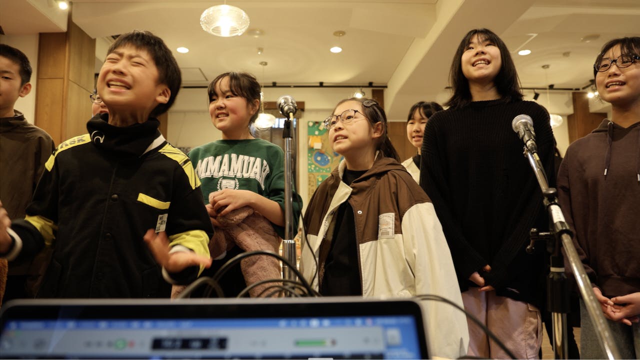 着々と進行中の、こども四日市ドキュメンタリー映画の制作ですが、今回はテーマ曲の収録が完了しましたので報告いたします。この曲の歌詞は、こどもたちによる運営会議『Gold市民会議』で、みんなのこども四日市での経験をフレーズにして出し合い、一つの歌詞にまとめ上げました。そして作曲を担当してくれたのが高校生のGold市民アリサさんです。合唱あり、ラップパートありの軽快で楽しい曲が出来上がりました。月一回のGold市民会議でパートごとに練習して収録を繰り返して、ついに全フレーズ収録完了しました!むつかしいラップパートも10分ぐらい練習して、すぐできちゃうこどもたち!すごすぎます笑。映画を盛り上げる一つの要素になってますのでお楽しみにです!