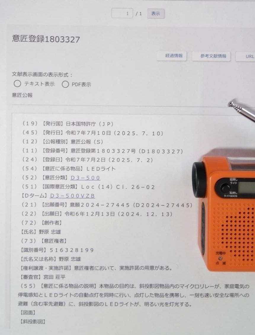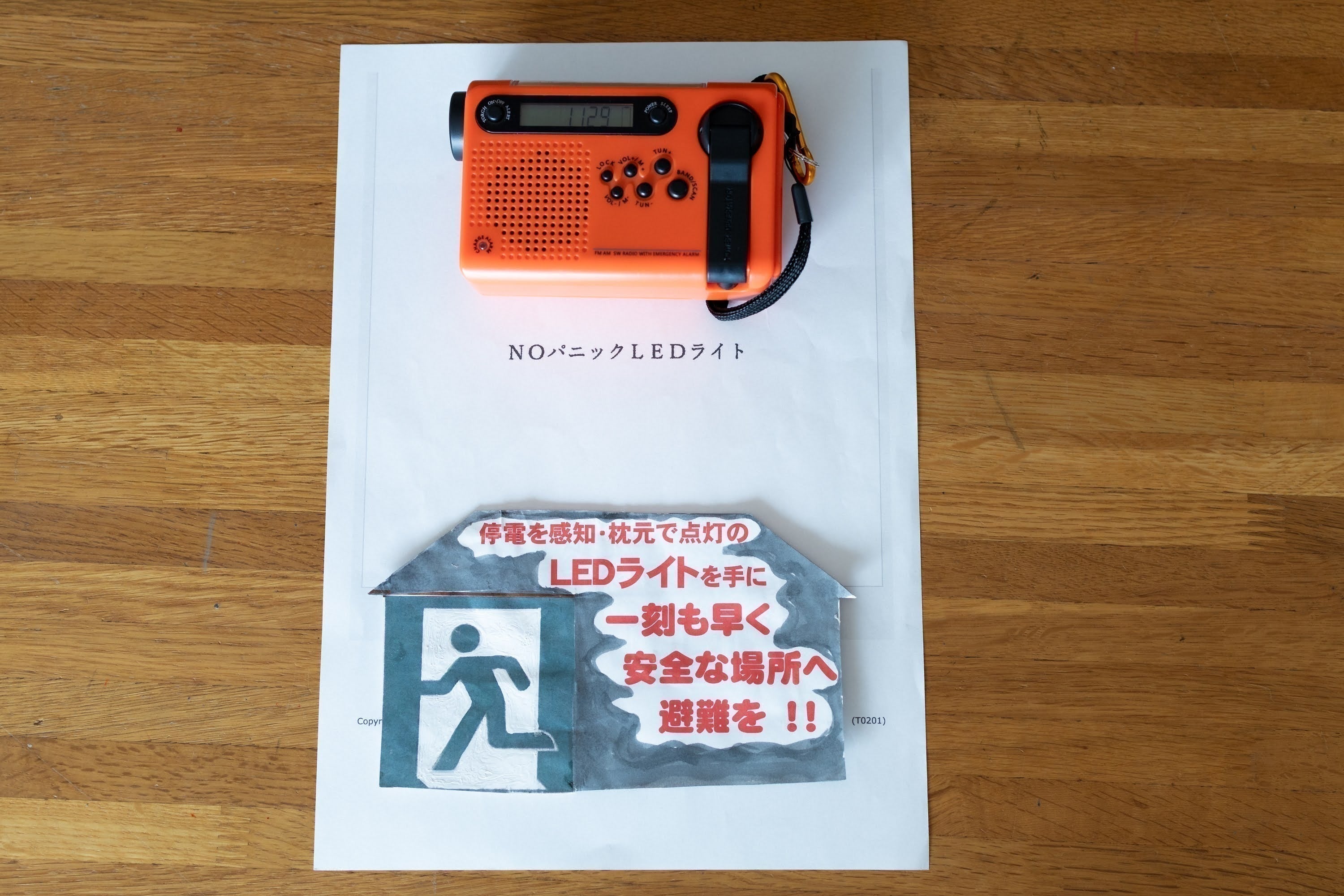 (この機能を意匠登録し登録第1803327号を取得、意匠権は[実施許諾]の用意がある)✅ ラジオ付きで、避難後の情報収集が可能