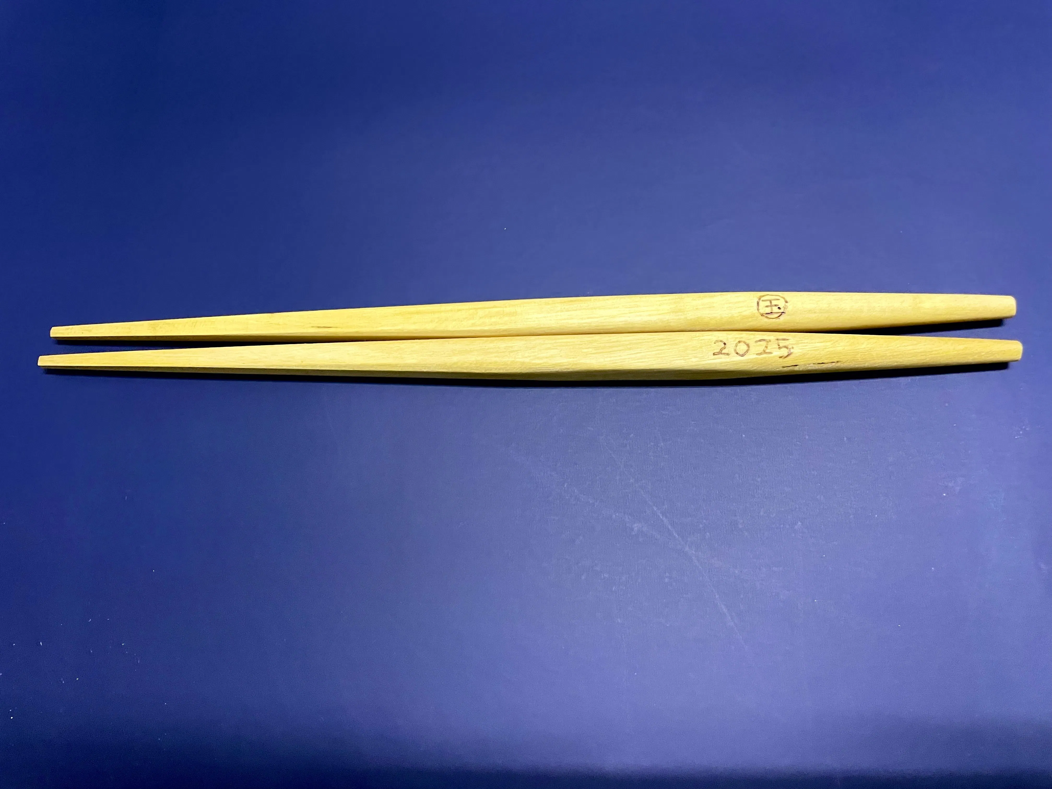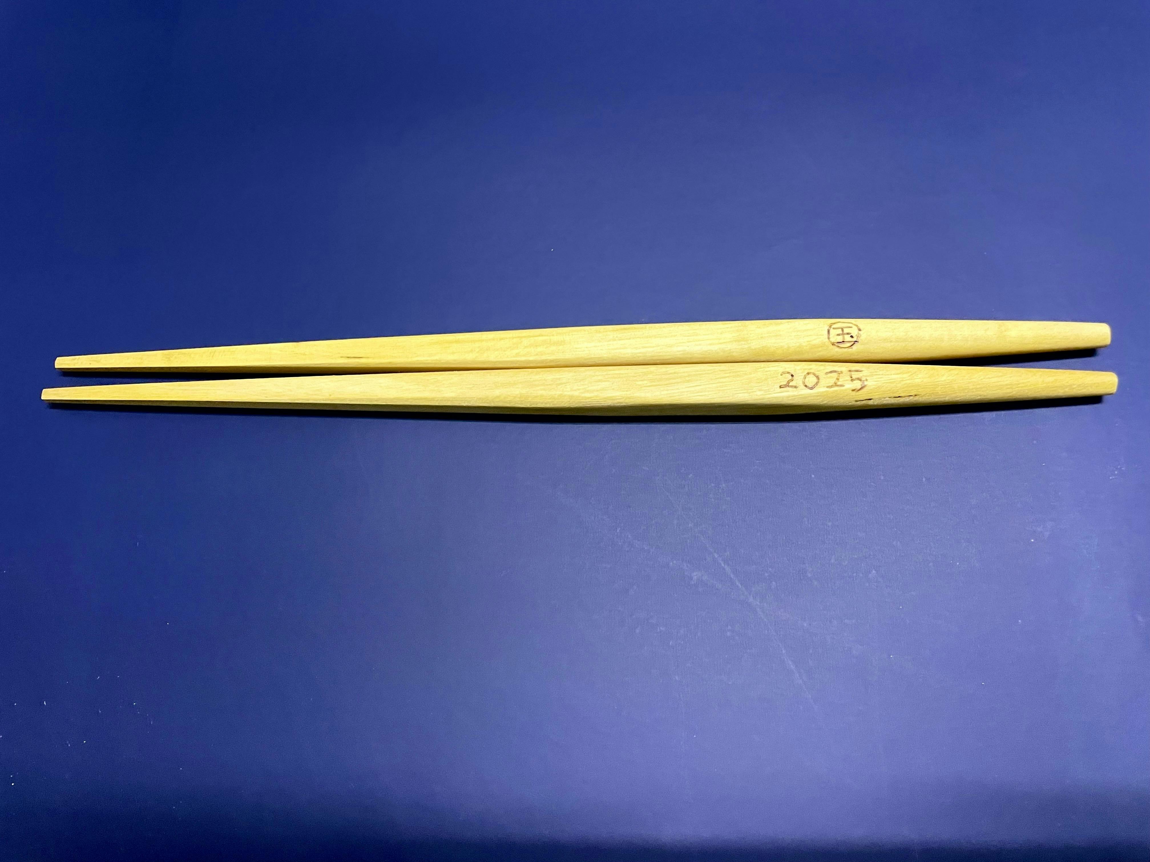 リターンではこの“琉球箸”を木桶と同じ杉材で作ります。シークワーサーの木より木目がはっきりしたお箸になります。