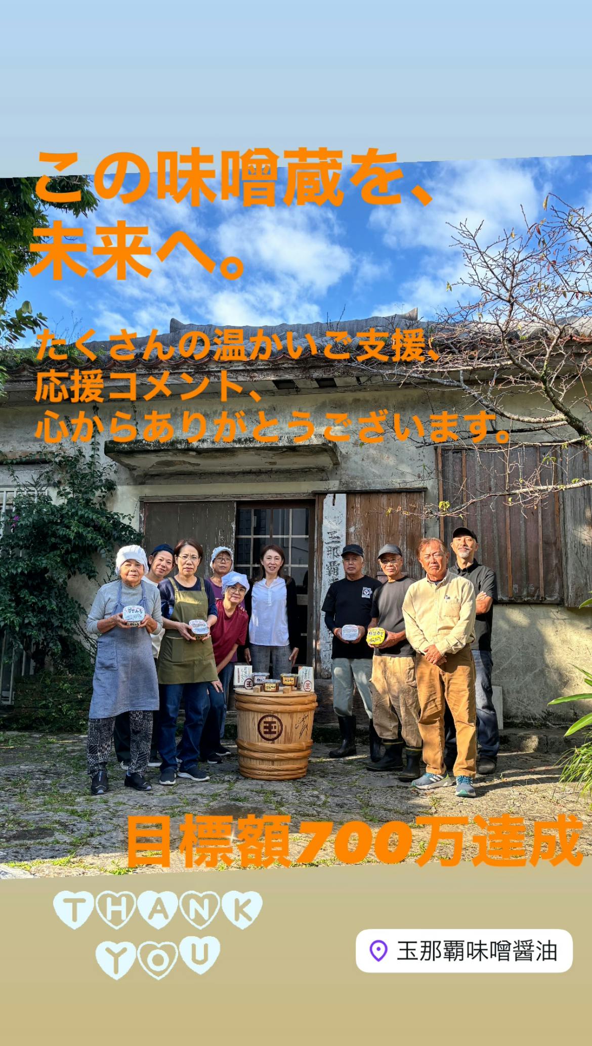 玉那覇味噌醤油のクラウドファンディングの挑戦は、目標金額700万円を達成することができました!