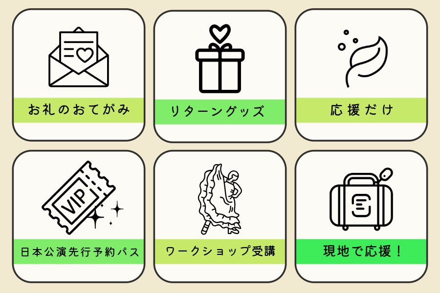 ※日本公演先行予約パス、ならびにワークショップ受講のリターンは具体的な内容が決まり次第追加されます。できるだけ早くみなさまにお伝えさせていただきますので、もうしばらくお待ちください。