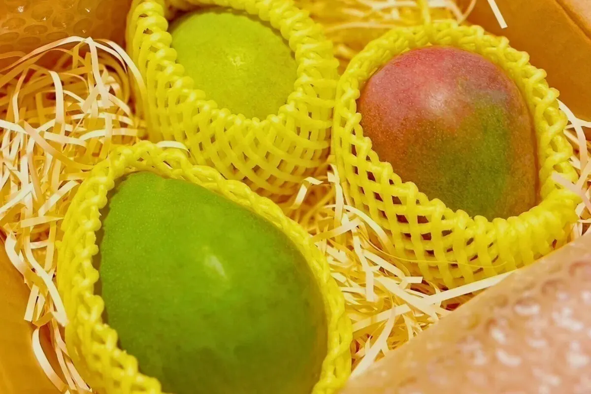 日本で珍しく貴重な17品種の様々な国のマンゴーを育てています。 もりやまびわ湖パール果物シリーズのパールマンゴーです。