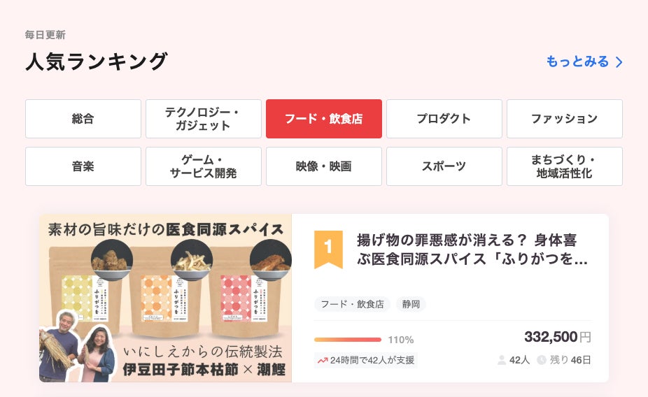 2026/04/16 07:30おはようございます!皆さま、いつも温かいご支援・応援を本当にありがとうございます。おかげさまで、現在までに50名の方からご支援をいただくことができました。お一人おひとりのご支援、温かいお気持ちに心より感謝申し上げます。そして、4月15日にはカテゴリー人気ランキング1位をいただくことができました。この結果は、皆さまの応援の積み重ねのおかげです。心より感謝申し上げます。現在は、ネクストゴール【70万円】に挑戦中です!ありがたいことに、40万円目前まで来ることができました。今回のプロジェクトを通して、医食同源の考えを日常に取り入れるきっかけを広げ、日本の食文化や伝統の価値を次の世代へつないでいきたいと考えています。ここからが、さらに多くの方へ届けていく大切なステージです。引き続き、応援・シェアでお力添えいただけましたら嬉しいです。どうぞよろしくお願いいたします。 もっと見る