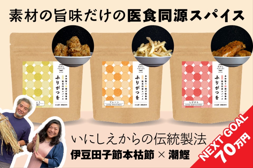 「ふりがつを」は、ひとふりで揚げ物をおいしくするだけでなく、医食同源の考え方を日常のおかずに取り入れるための調味料です。