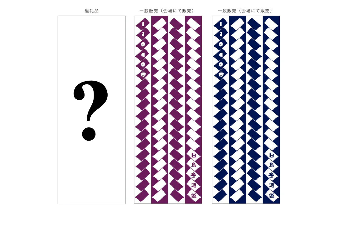 白鳥おどりin池袋オフィシャル手ぬぐいです。カラーバリエーションが3種類あり、1種類は返礼品だけのカラーになっています。今年の返礼品カラーは後日発表します。