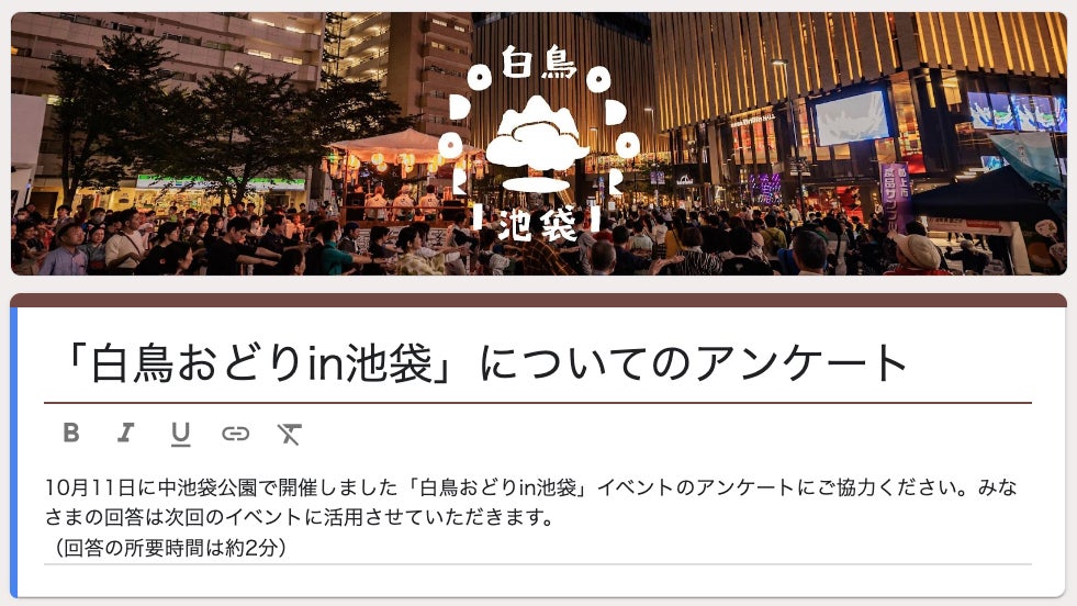 白鳥おどりin池袋ご来場の皆様へ/アンケートご協力依頼