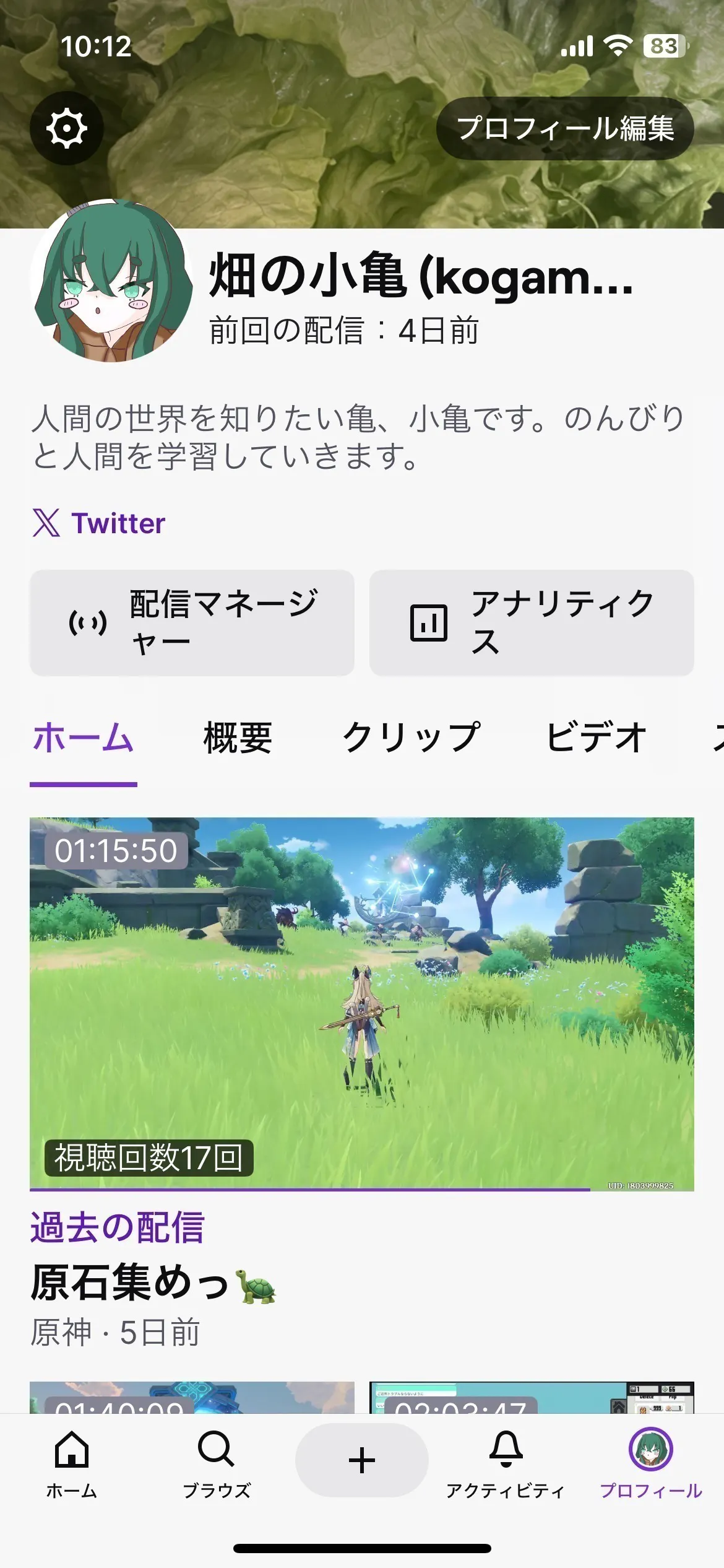 ですが、実際に畑の小亀としてTwitchで配信を始めフォロワー14人になり。私の配信を見に来て下さる視聴者さん達と触れ合うなかでもっと本気でやりたい。配信の質を上げたいと思う様に成りました。