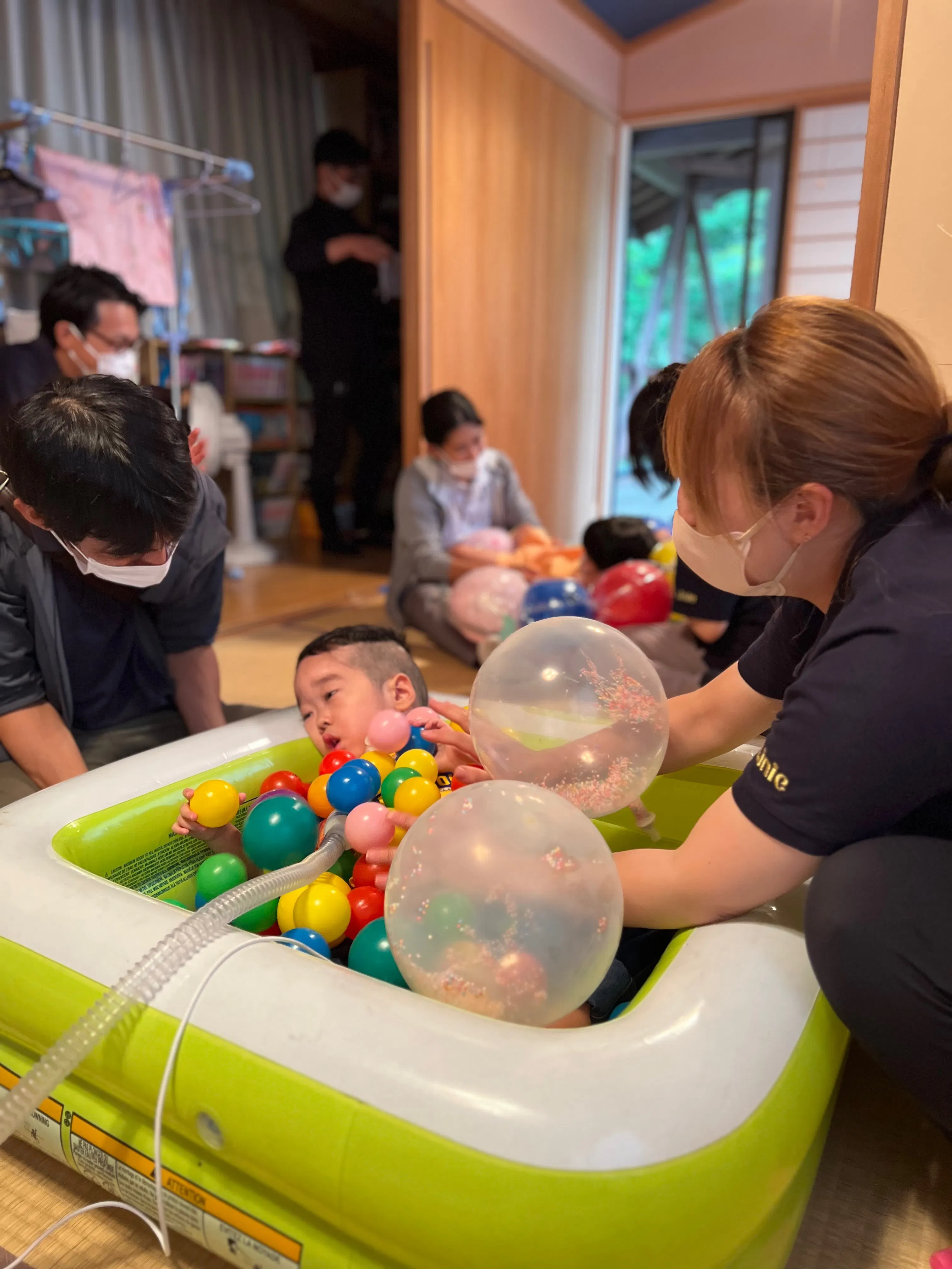 室内にて即席ボールプール