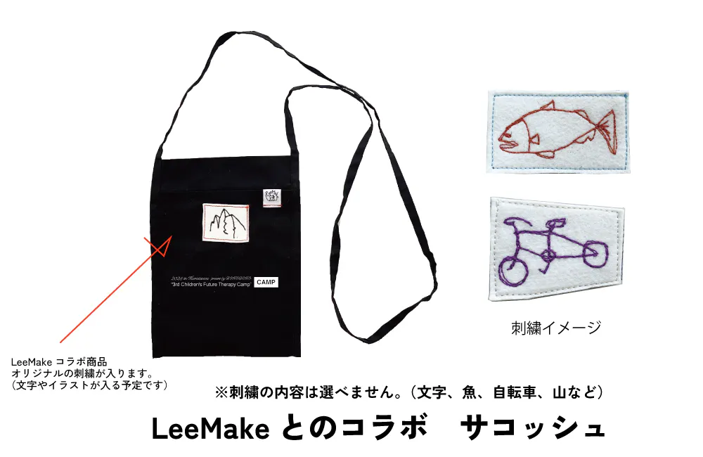 オリジナルサコッシュにLeeMakeの刺繍が入ります。