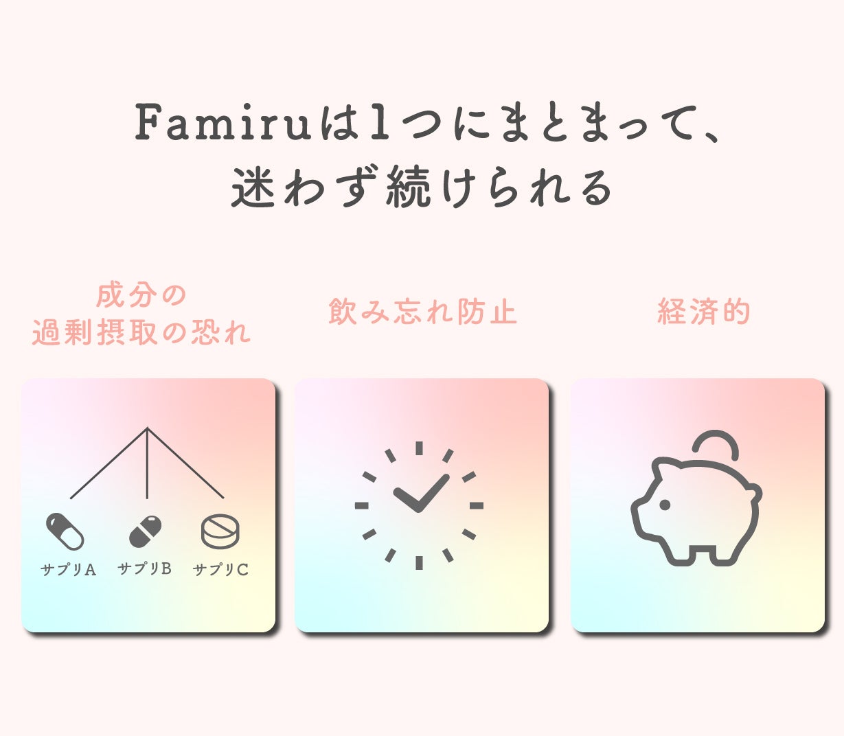 Famiruは必要な成分をすべて一つにまとめ、添加物も極力カット。