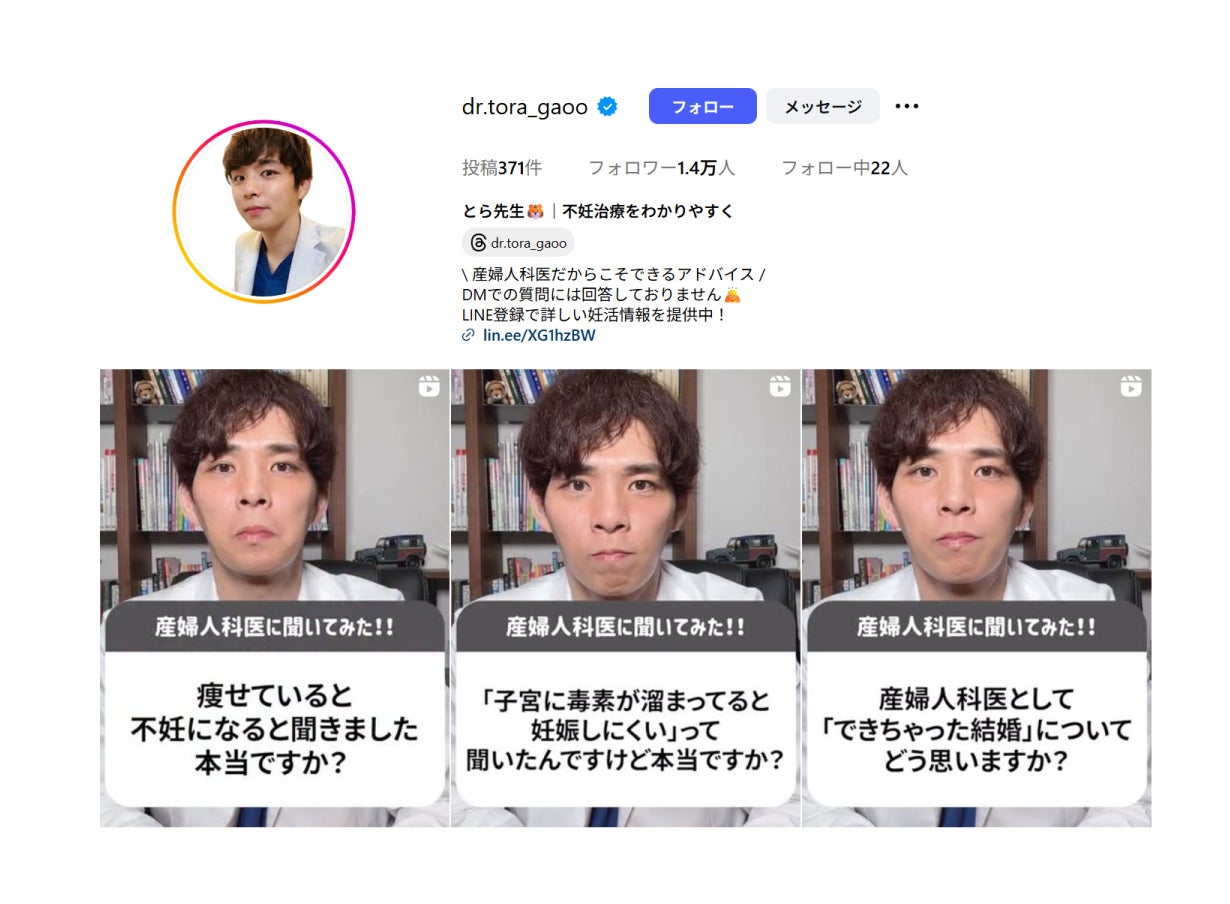 Instagram(@dr.tora_gaoo)やYouTube(とら先生産婦人科医)で