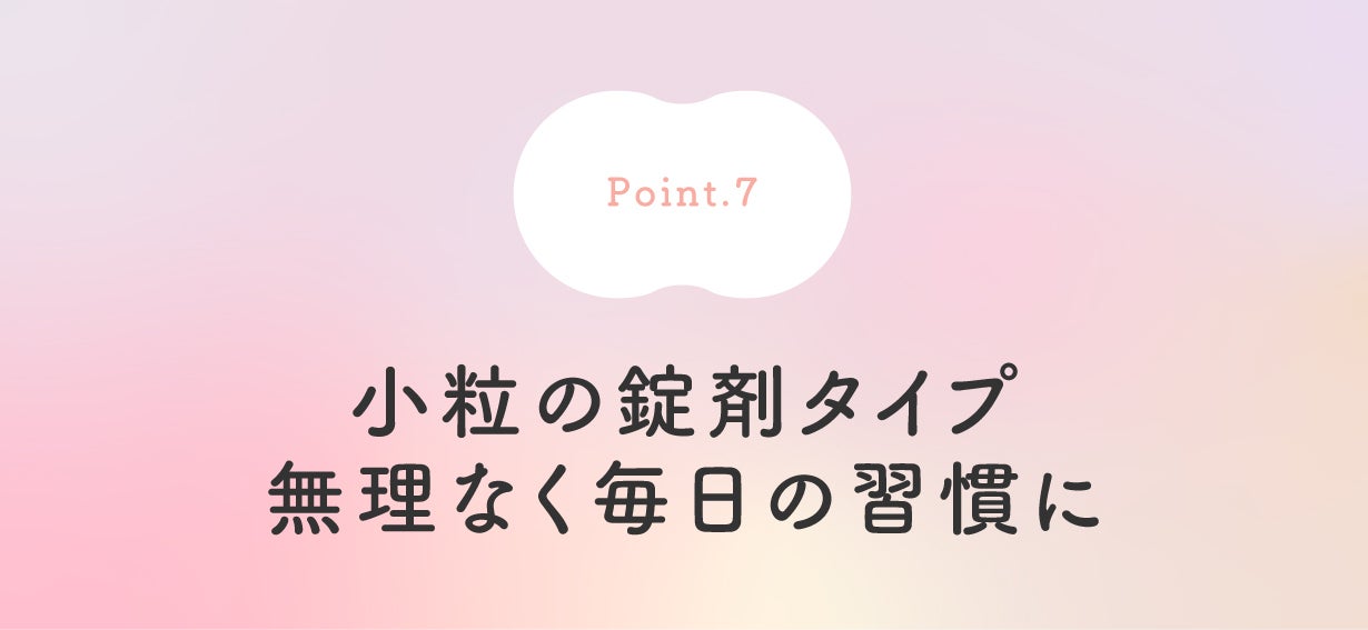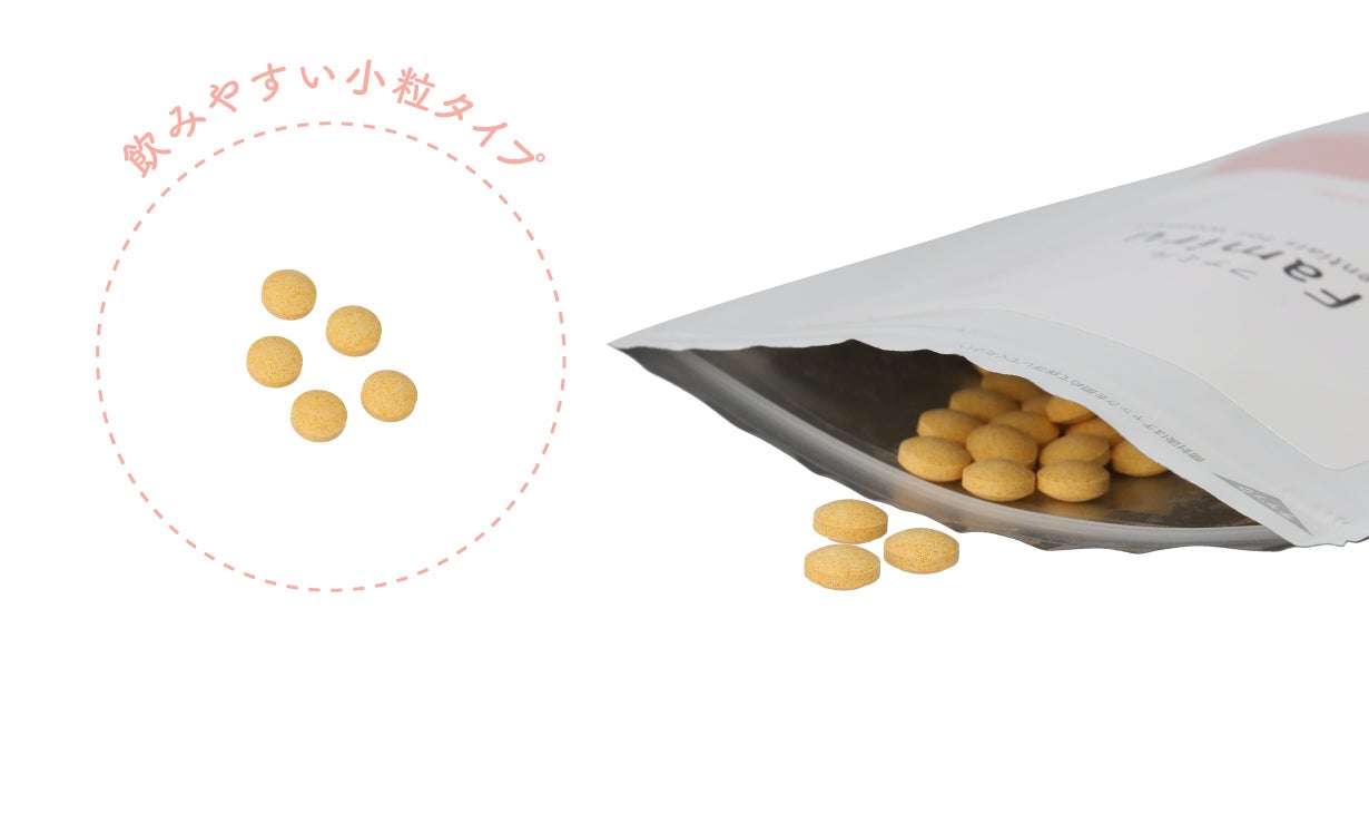 「持ち運びやすさ」と「毎日の続けやすさ」を第一に、小粒の錠剤タイプを採用。