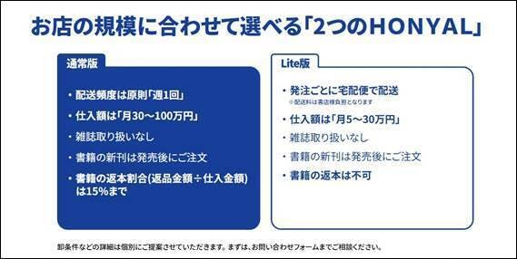 売り場面積がかなり小さい,「超」がつく小規模書店ですが,新刊書籍を販売するため,大手取次会社と交渉中です。本の仕入れ先を確保することは,実際のところ,かなりハードルが高いのですが,㈱トーハン様の「HONYAL(ホンヤル)」という仕組みを活用します。