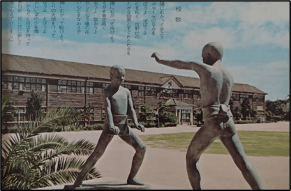 このほか,校内には相撲少年をモチーフにした「少年の像」もあります。日新小の男児は,運動会などで「相撲体操」を披露することになっています。