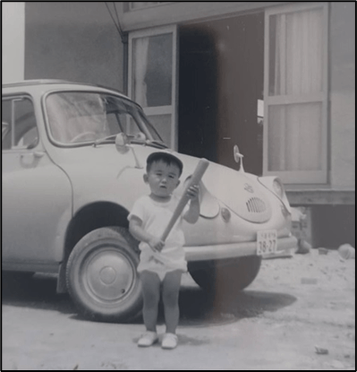 写真は,今から59年前のものです。スバル360と一緒に写っているのが2歳のぼくです。