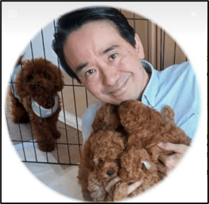 トイプードル犬のミアモ,マロン,レオ,こむぎ,ベル,ララ(雄3匹,雌3匹)がいます。2022年8月,4匹の子犬が生まれたので,セラピー犬になれるように優しく育ててきました。