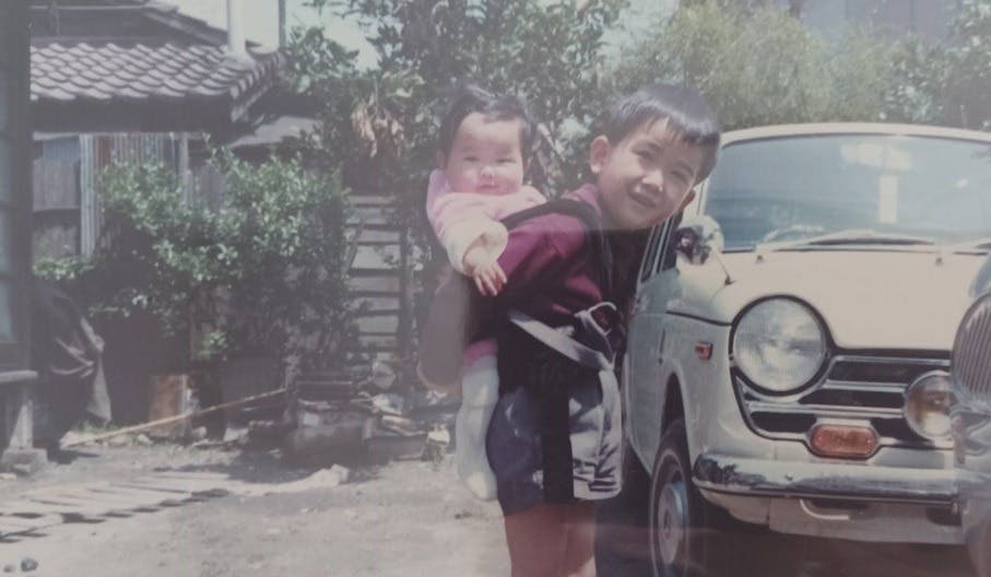 この写真,セピア色して年季が入っていますよね。わが家で初めて買った「スバル360」です。1958年に富士重工業(現・SUBARU)が発売した軽自動車です。その独特のフォルムから「てんとう虫」の愛称で親しまれました。