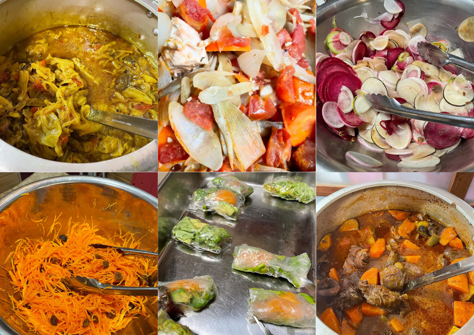 最初の献立は、ココナッツミルクのチキンドリア、豚肉のトマト煮、サラダとパン。