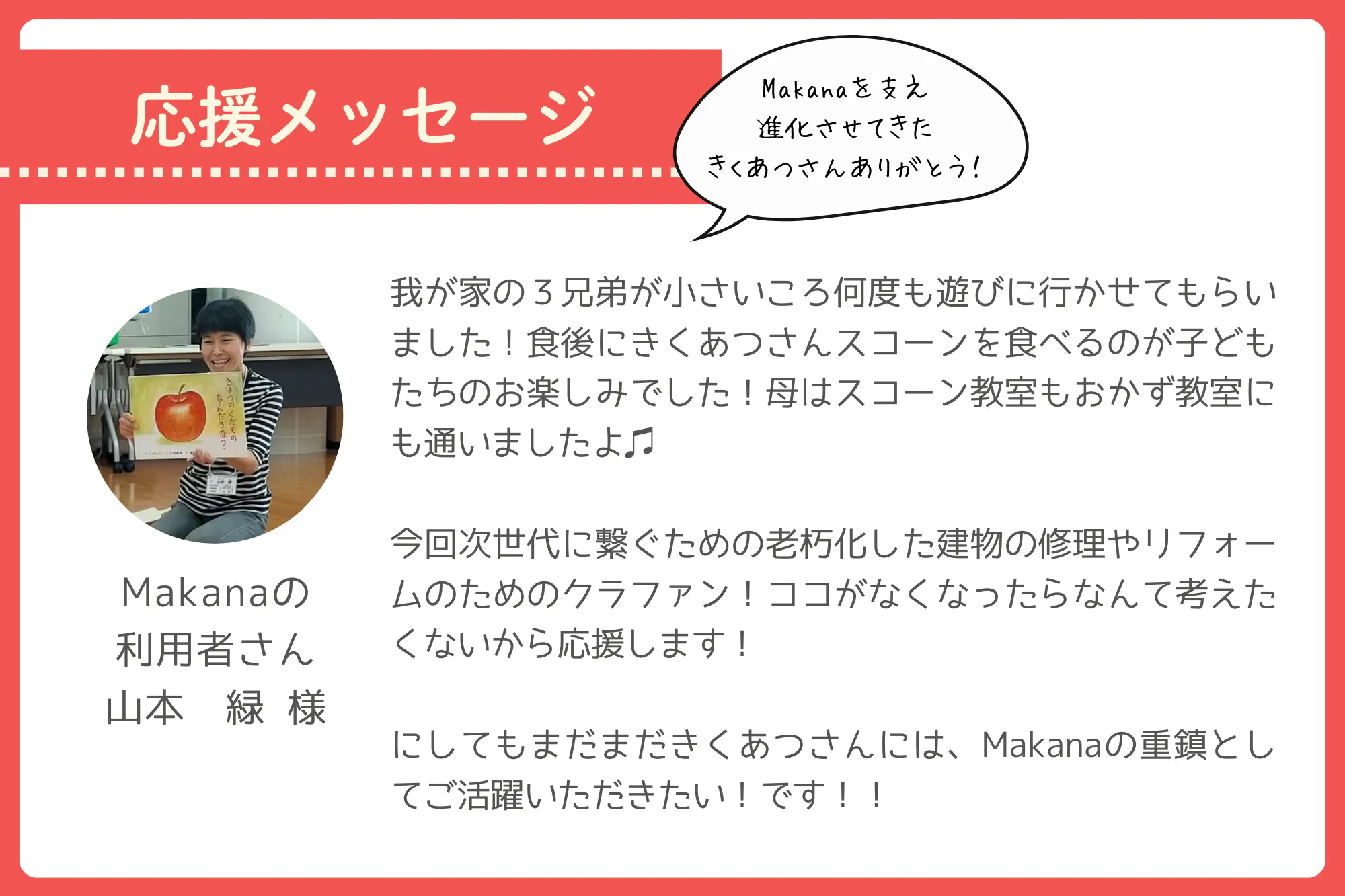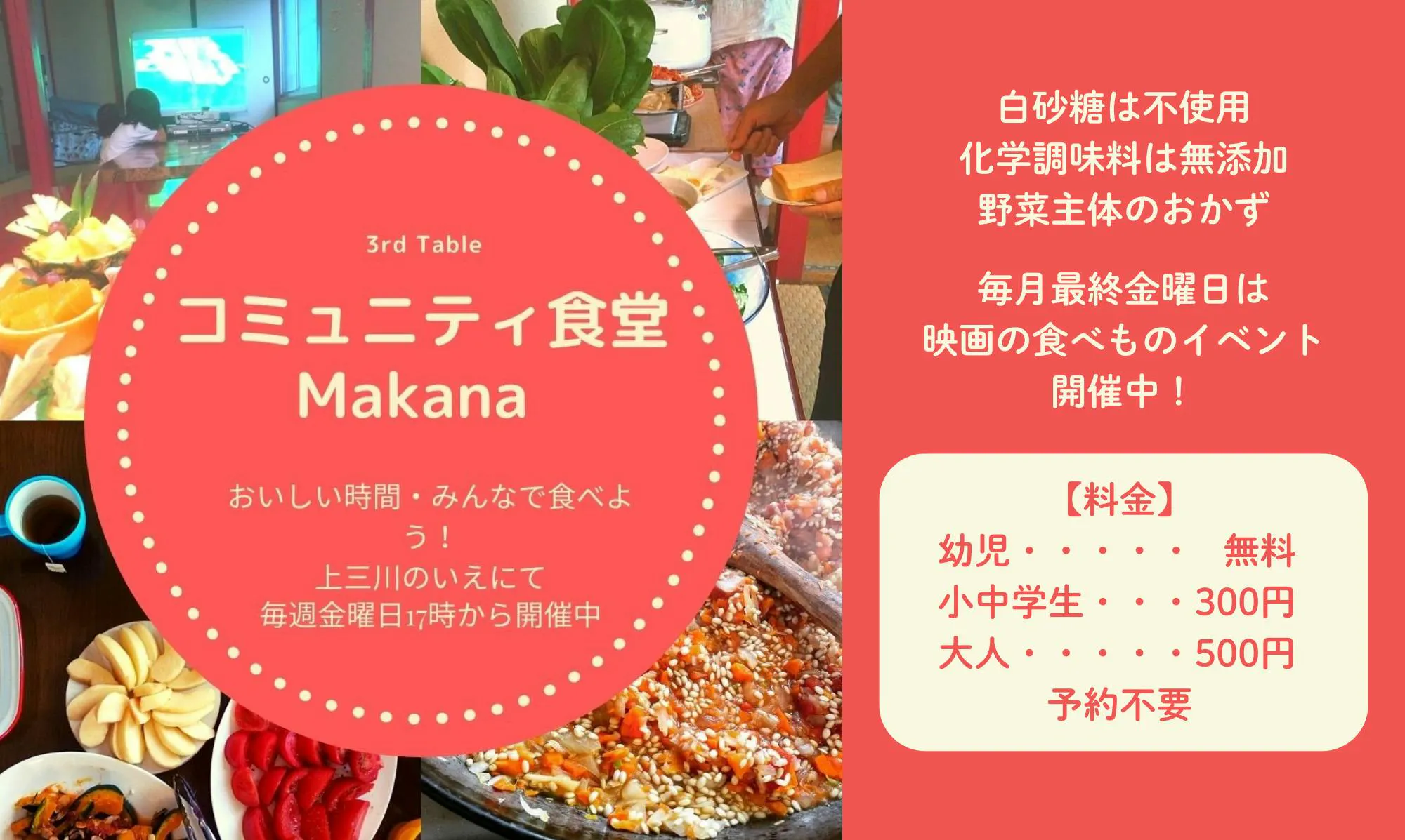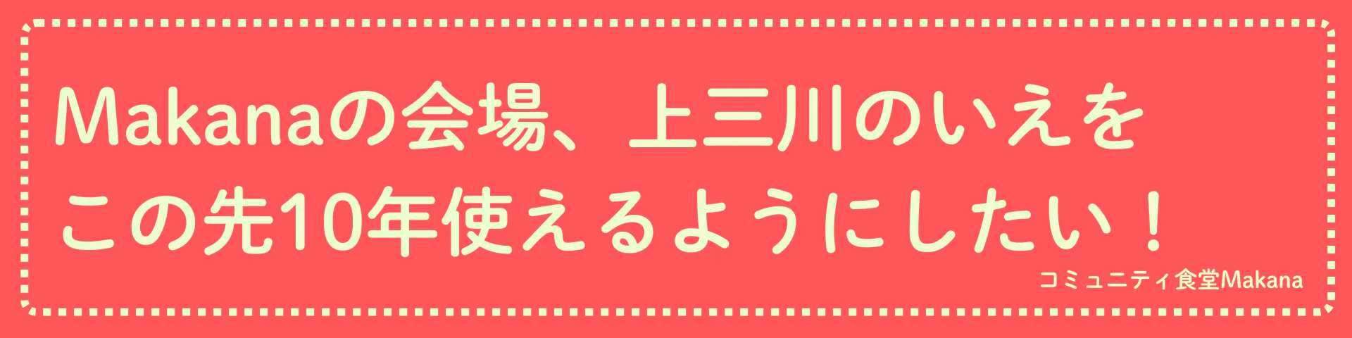 「コミュニティ食堂Makanaでご飯を食べてみたい!」「映画の食べ物気になる!」と思ってくださった方、「Makanaでどんなことをやっているのか興味ある!」という方、さまざまな角度からMakanaに興味を持ってくださったすべての皆様と、コミュニティ食堂Makanaの次の10年を一緒に作り上げていけたら、こんなに嬉しいことはありません。