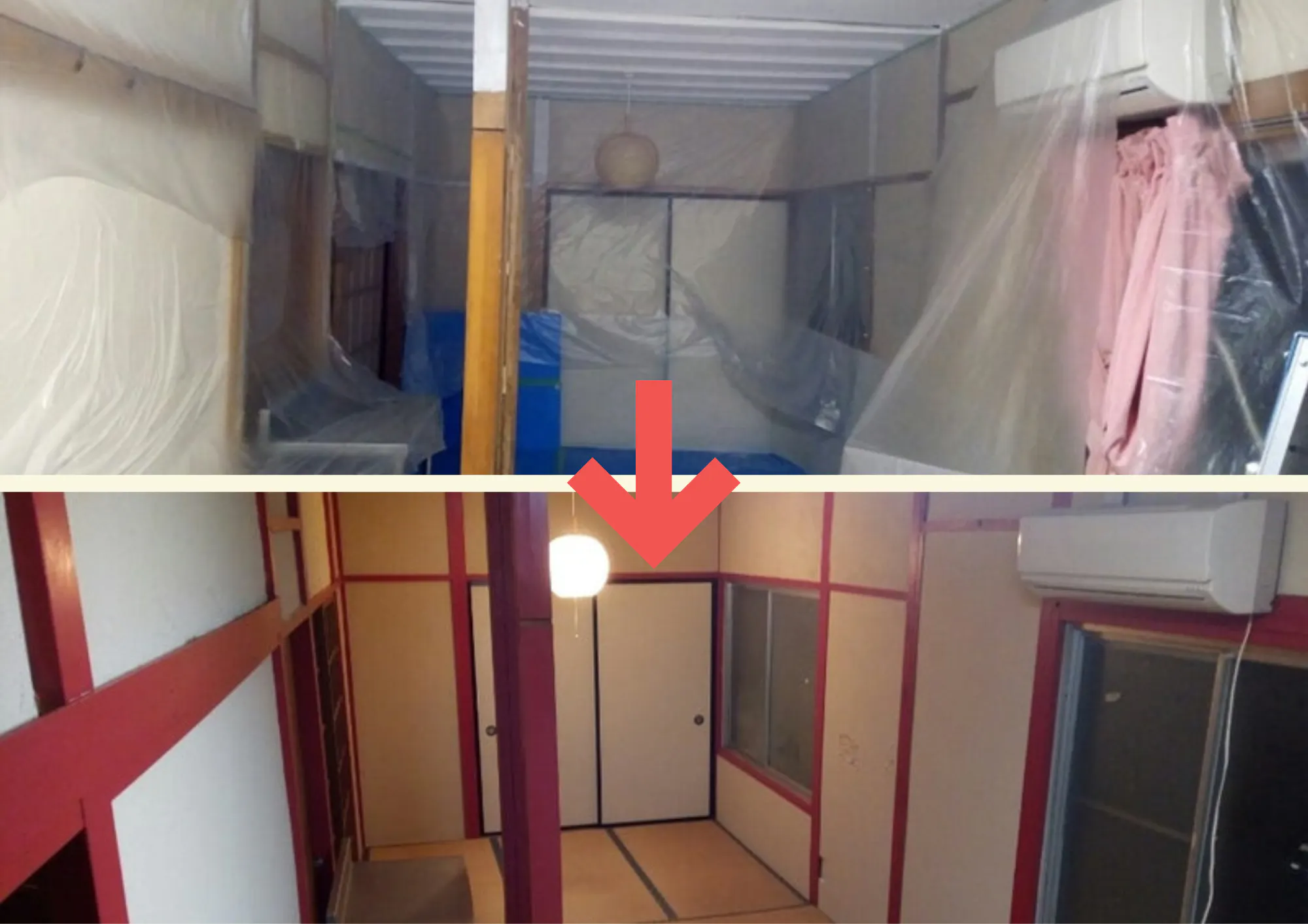 壁と畳を養生して、ペンキを塗って養生を取ったら、大変身!