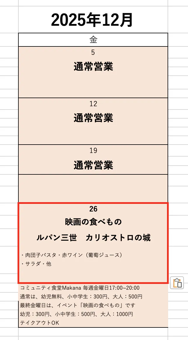 2025/12/26は、2025年最後のコミュニティ食堂開催日です。