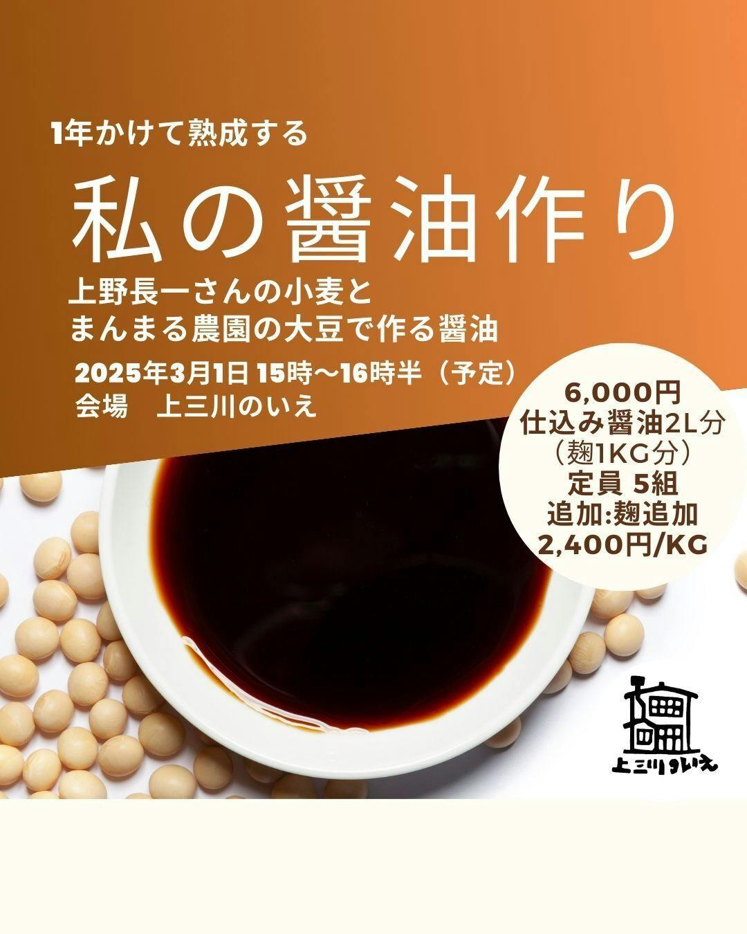 上野長一さんの小麦 × まんまる農園の大豆で仕込みます。