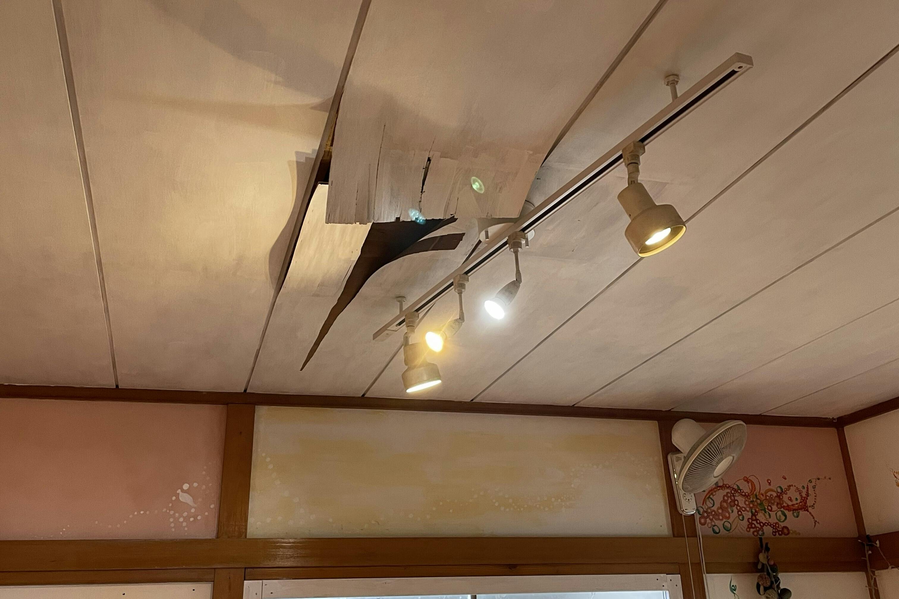 こんなふうに、天井に穴が開いてしまったところもあります。