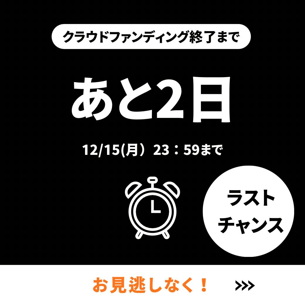 2025/12/13 20:00支援者の皆様、そしてプロジェクトをご覧の皆様XEN Equipment Japanです。11月からスタートした本プロジェクトも、ついに【残り2日】となりました!ここまで多くの温かいご支援と応援をいただき、心より感謝申し上げます。本当にありがとうございます!今日は、まだ支援を迷われている方、「お気に入り」に入れて検討中の方へ、最後のお知らせです。【お得な価格は12/15(月) 23:59まで】本プロジェクトが終了しますと、CAMPFIRE限定の割引価格での提供は終了し、一般販売価格(定価)となります。XENのギアは、ただの「バッグ」ではありません。あなたのランニングライフから「ストレス」をなくすための投資です。・走っても荷物が揺れない解放感・背中の蒸れを防ぐ快適性・ 街にも馴染む洗練されたデザイン・バッグを下ろさず背中の荷物が取れる「あの時買っておけばよかった…」と後悔していただきたくないので、ぜひこの週末の間に、未来の相棒を確保してください。現在、皆様にいち早く商品をお届けできるよう、製造・配送チームと共に準備を進めております。ラスト2日。最後まで走り抜けますので、SNSでのシェアや拡散のご協力もいただけますと幸いです!引き続き、XEN Equipment Japanをよろしくお願いいたします。 もっと見る祝・目標達成!皆様ありがとうございます