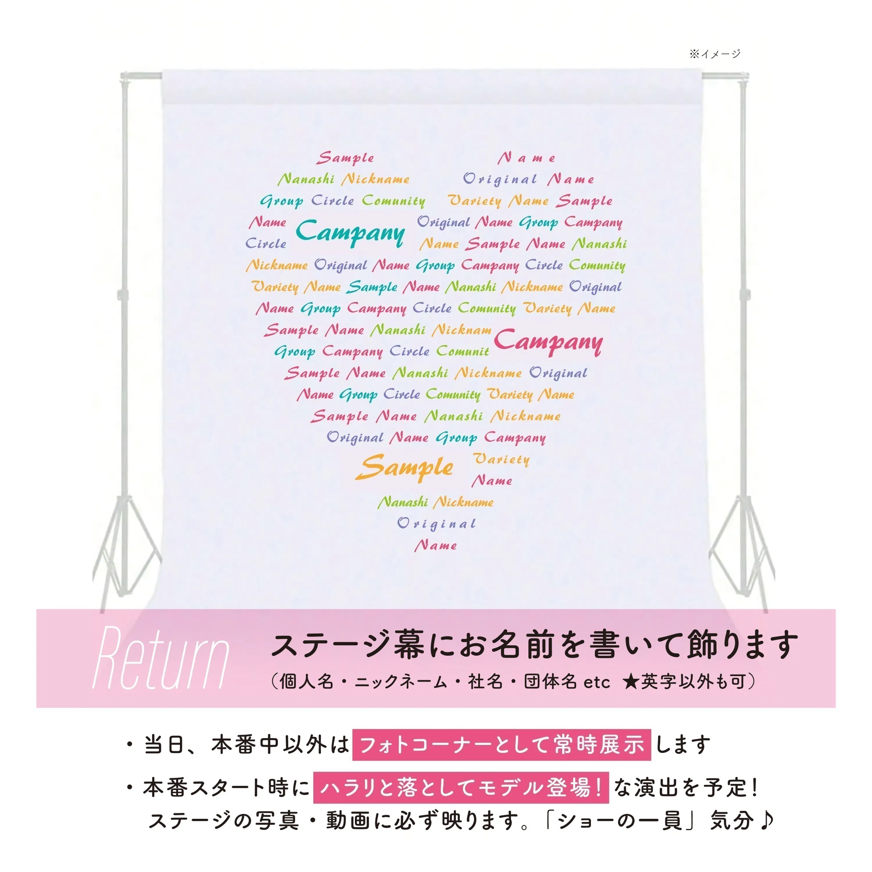 (ステージの写真や動画に必ず写ります。幕のメイキング動画も公開予定)
