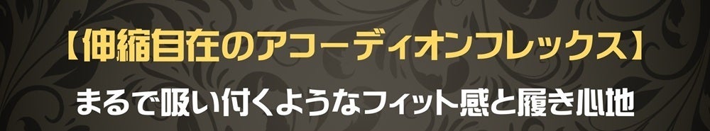アコーディオンのような特殊な編み方で、伸縮自在なフィット感と動きやすさを実現。足の形や動きに合わせて自在に伸び縮みし、まるで吸い付くようにピッタリフィット。快適な履き心地です