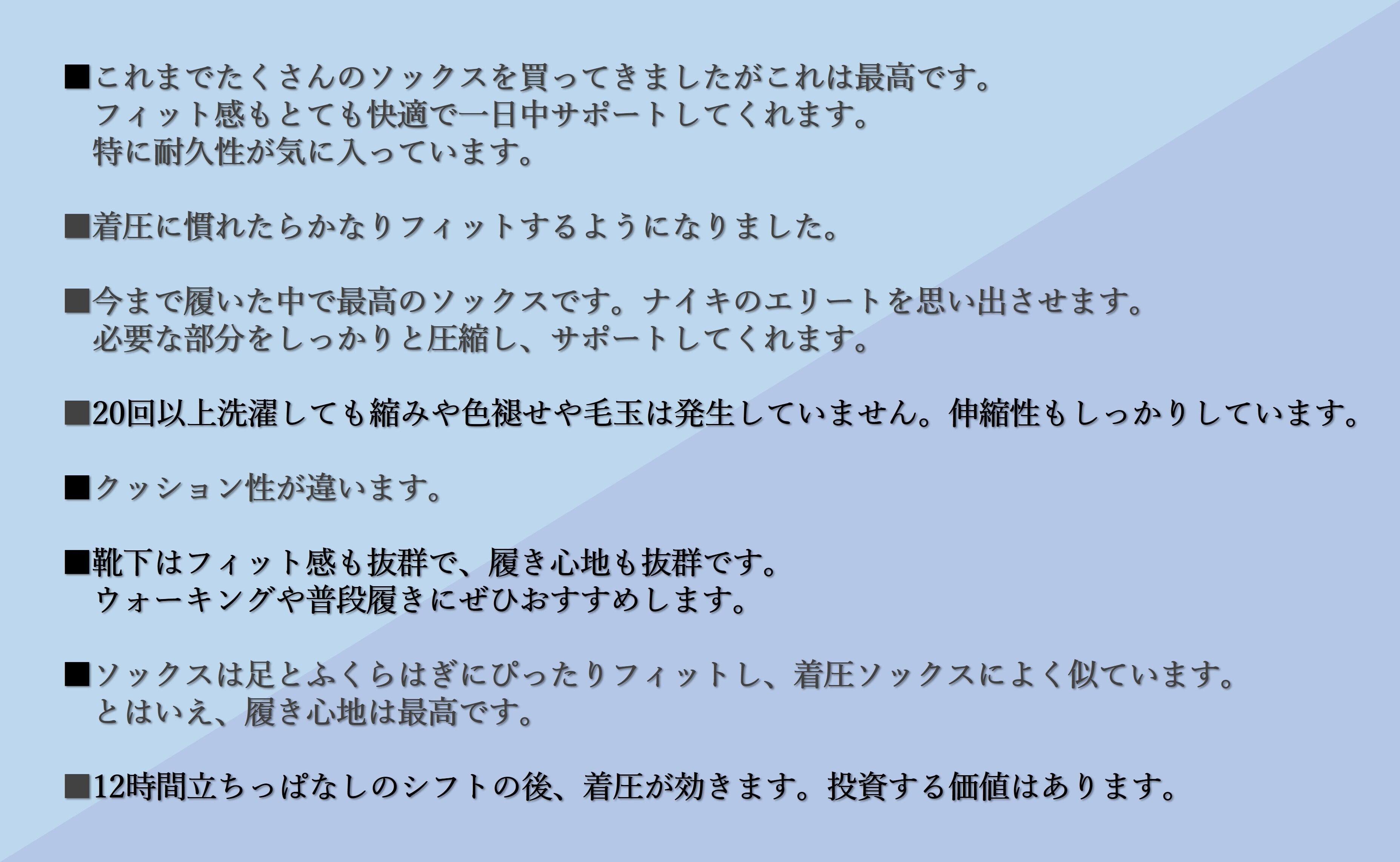 2025/10/07 12:00この商品の1番の特徴としてアコーディオンフレックスがありますがまるでアコーディオンの蛇腹のように、伸縮性に優れた特殊な構造のことです。この構造は、主に靴下の特定の部位(例えば足首や甲の部分)に採用され、以下のような効果をもたらします。■抜群の伸縮性: 足の動きに合わせて自在に伸縮するため、突っ張り感がなく、非常に動きやすいのが特徴■快適なフィット感: 足の形状や動きに柔軟にフィットし、ずれ落ちを防ぎながらも締め付け感を軽減■最大限の可動域: 足首の曲げ伸ばしなど、あらゆる動きを妨げることなく、最大限の可動域を確保■パフォーマンスの向上: スポーツ時など、激しい動きが必要な場面でも、靴下が動きに追従するため、パフォーマンスを最大限に引き出すアコーディオンフレックスは、動きやすさを重視する方、スポーツを楽しむ方、そして快適なフィット感を求める方におすすめの機能です。足の自然な動きを妨げず、まるで体の一部のようにフィットする感覚をぜひ体験してください。 もっと見る