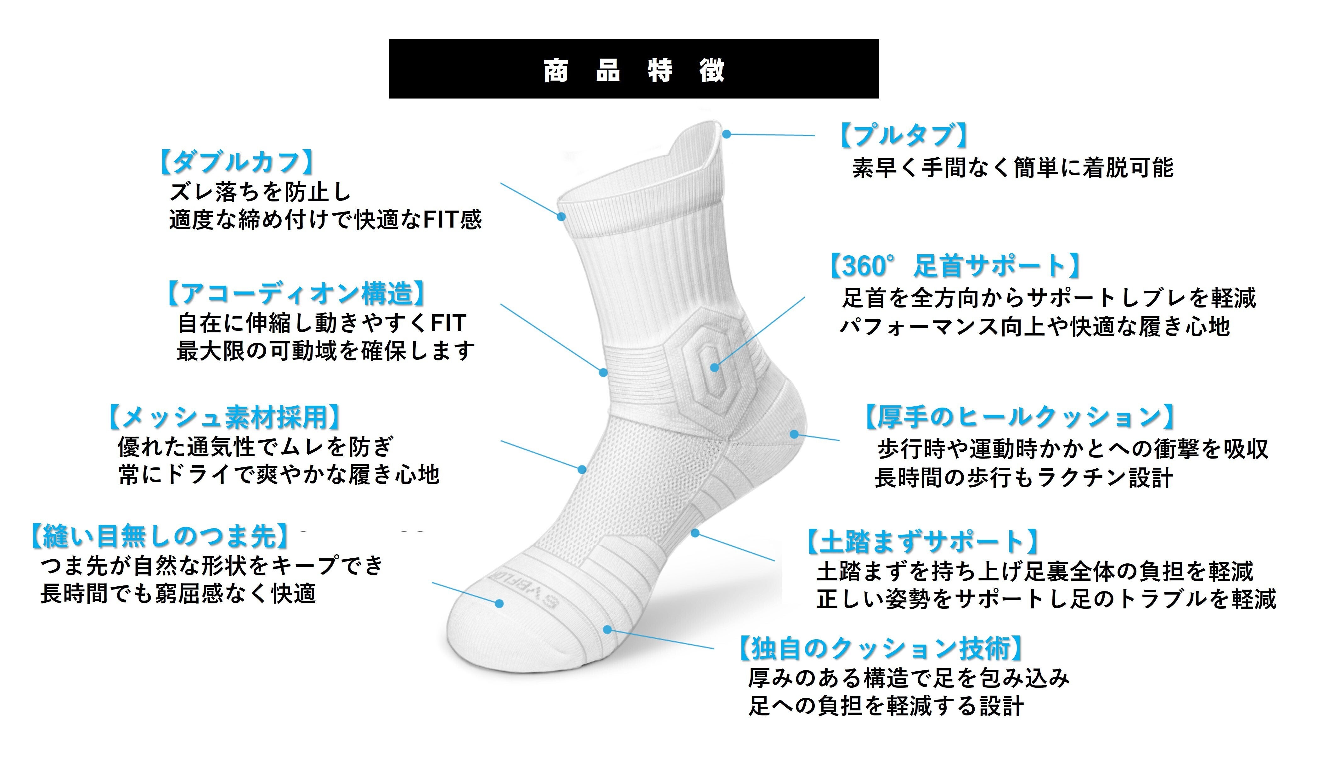 9つの機能の靴下で快適もサポートも一歩先へ