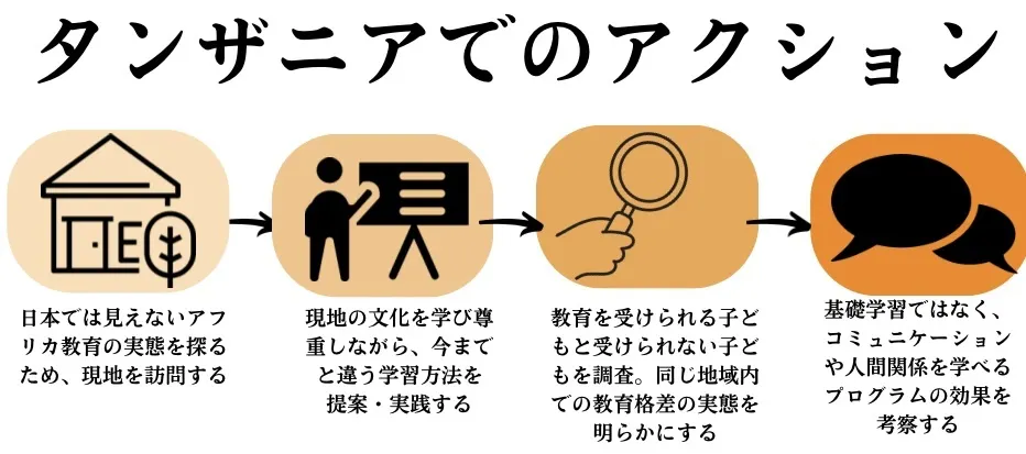 私が取り組みたいと考えているプロジェクトは、タンザニアでの移動型青空教室を行うことです。私が移動型青空教室にこだわる理由は以下の理由があります。