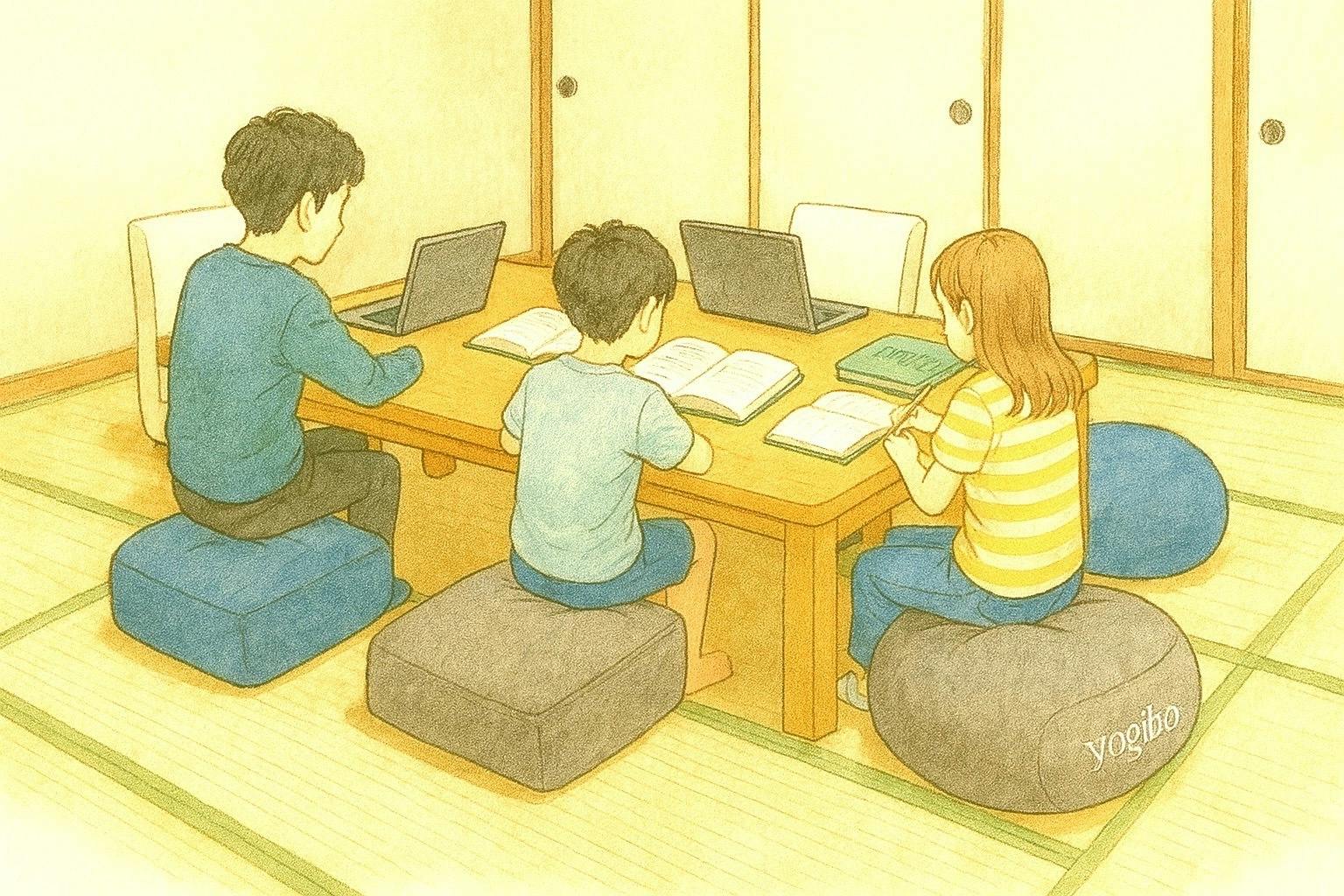学習スペースは『学校のような学習机とイスの部屋』と『家のような座って勉強するスタイルのテーブル座布団部屋』の2部屋です。