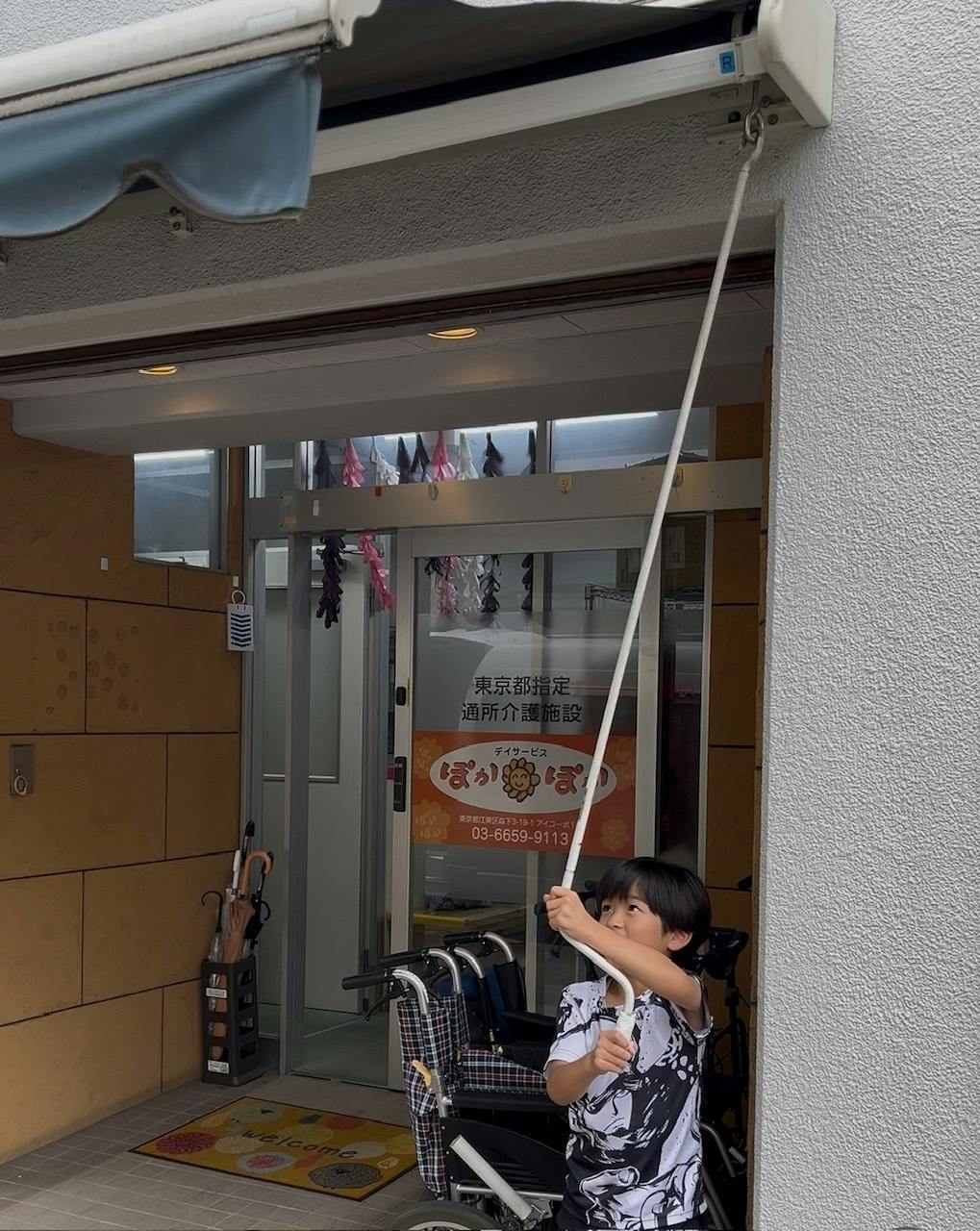 入口の開閉式屋根の仕事は三男のお仕事!↑